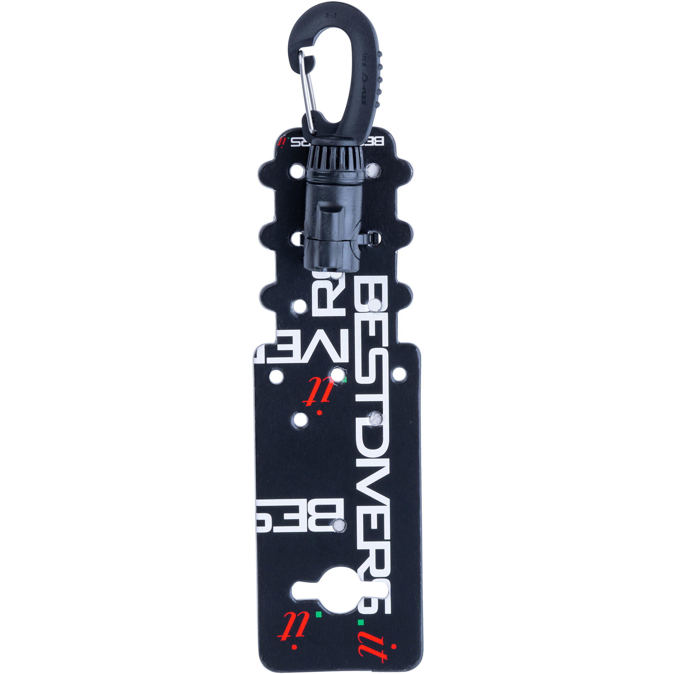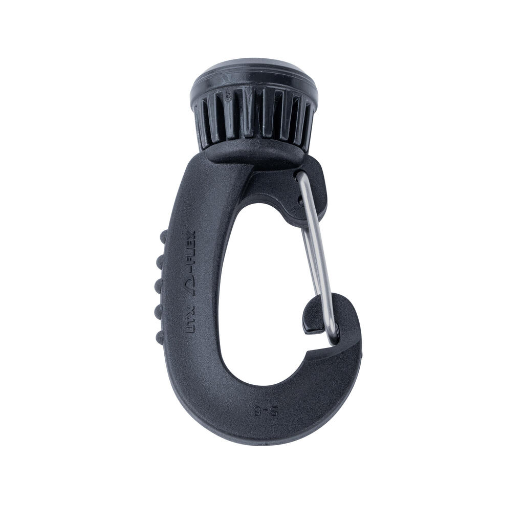 Držalo je zasnovano za pritrjevanje ene cevi na potapljaški kompenzator plovnosti.