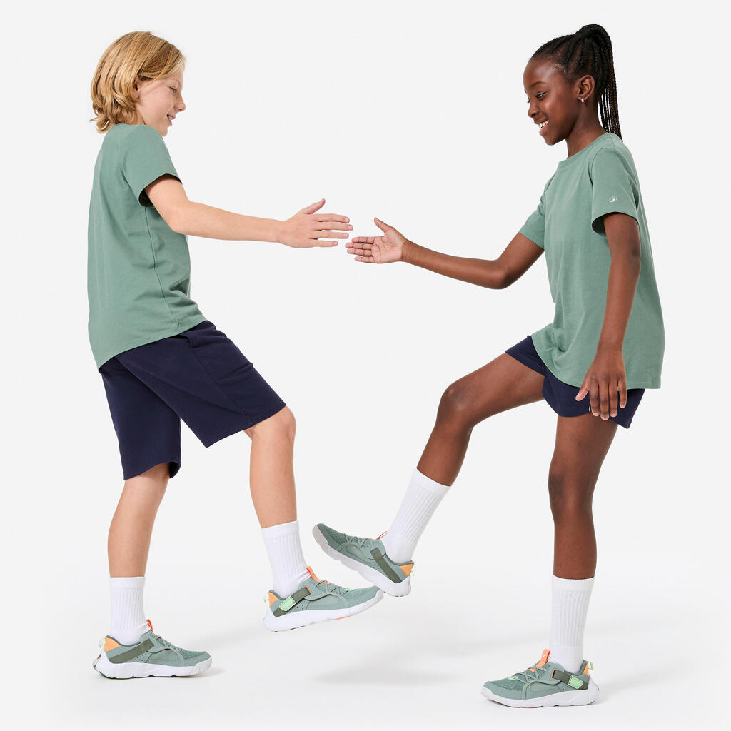 Ta majica je s svojim ravnim krojem, mehko tkanino iz 100-% bombaža in številnimi barvami zasnovana tako, da bo postala športna stalnica v garderobi vašega otroka. Zaradi svetlih barv in oblike, ki otrokom omogoča svobodno gibanje, je kot nalašč za šport in vsakodnevno nošenje. Popolno obleko sestavite tako, da jo kombinirate z drugimi izdelki iz serije Essentials: kratke hlače, pulover, tekaške hlače in jakna.