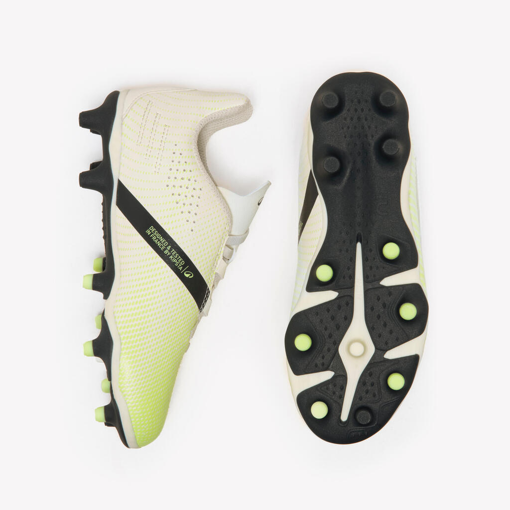 Nogometne čevlje smo razvili v sodelovanju s strokovnjakom za stopala, ki je posebej specializiran za šport in poklicni nogomet. Skupaj smo zasnovali različne tehnologije in koncepte. Posebej smo zasnovali število in položaj čepov na podplatu, da bi zagotovili najboljše razmerje med oprijemom in udobjem.