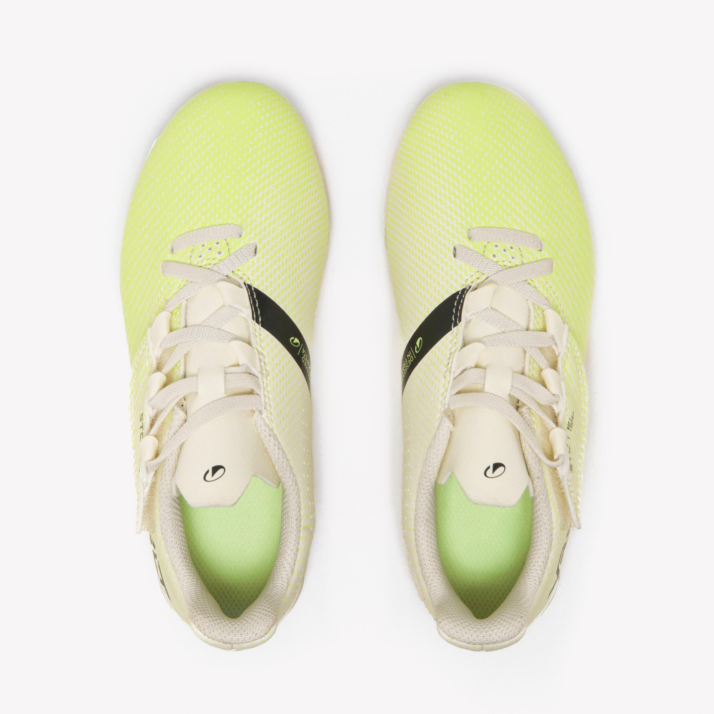 Pri zasnovi čevljev smo imeli v mislih samo en cilj: zagotoviti čimbolj udobne nogometne čevlje. Zgornji sprednji del iz mehkega PU, podloga v predelu pete iz mrežastega materiala, predoblikovan vložek in širok jezik, ki se ne zvija in med igro ostane na svojem mestu. Dvignjen zadnji del pete podpira stopalo in ga ohranja na mestu.