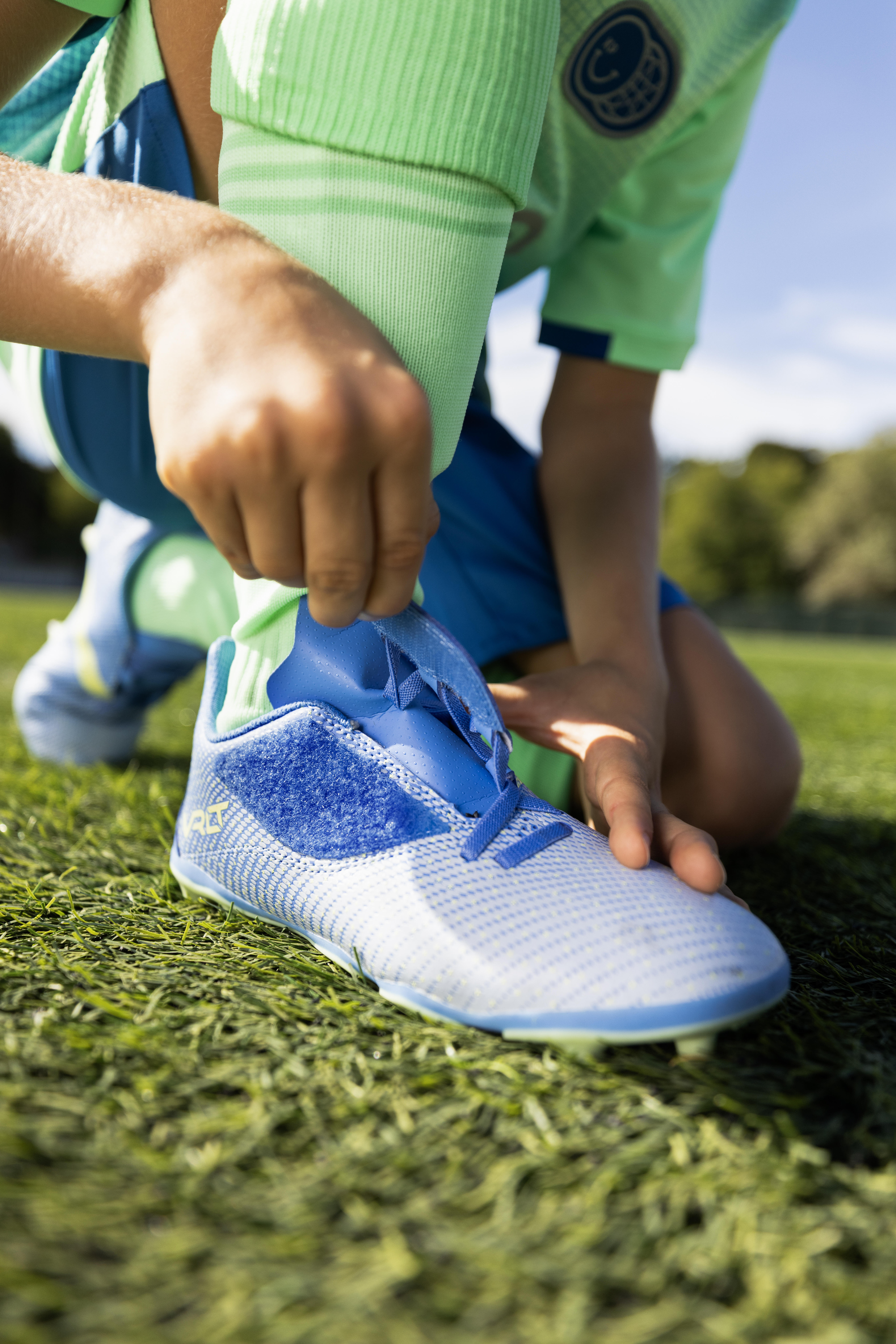 V sodelovanju z igralci, starši in trenerji smo zasnovali nogometne čevlje, ki omogočajo enostavno obuvanje. Pri razvoju čevljev je sodeloval tudi strokovnjak za otroška stopala. Torej, kaj je tisto, kar jih dela tako odlične? Enostavno obuvanje s trakom z ježkom.