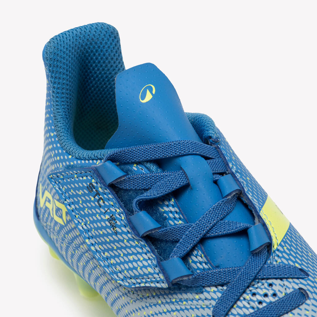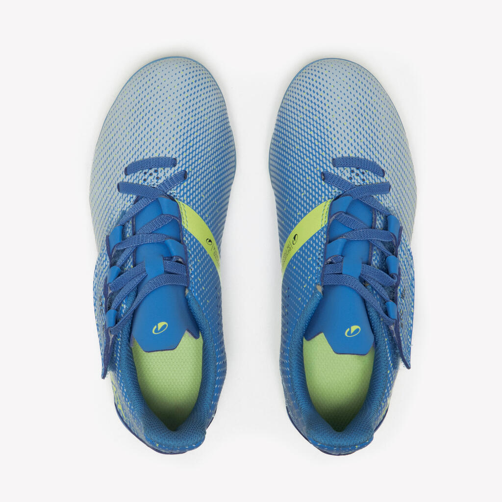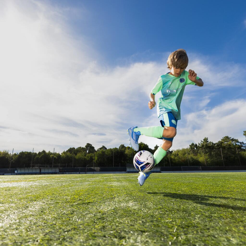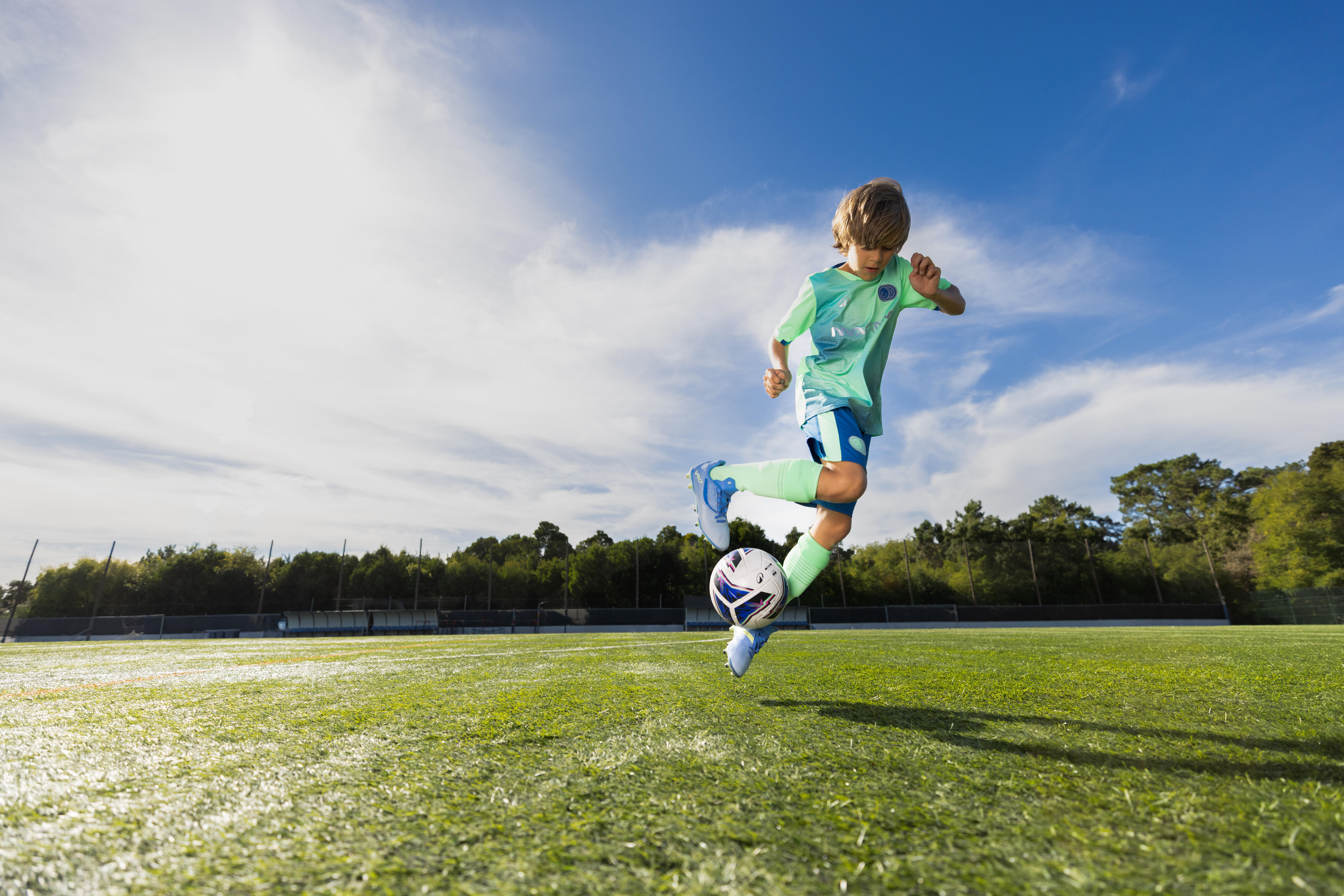 Pri zasnovi čevljev smo imeli v mislih samo en cilj: zagotoviti čimbolj udobne nogometne čevlje. Zgornji sprednji del iz mehkega PU, podloga v predelu pete iz mrežastega materiala, predoblikovan vložek in širok jezik, ki se ne zvija in med igro ostane na svojem mestu. Dvignjen zadnji del pete podpira stopalo in ga ohranja na mestu.