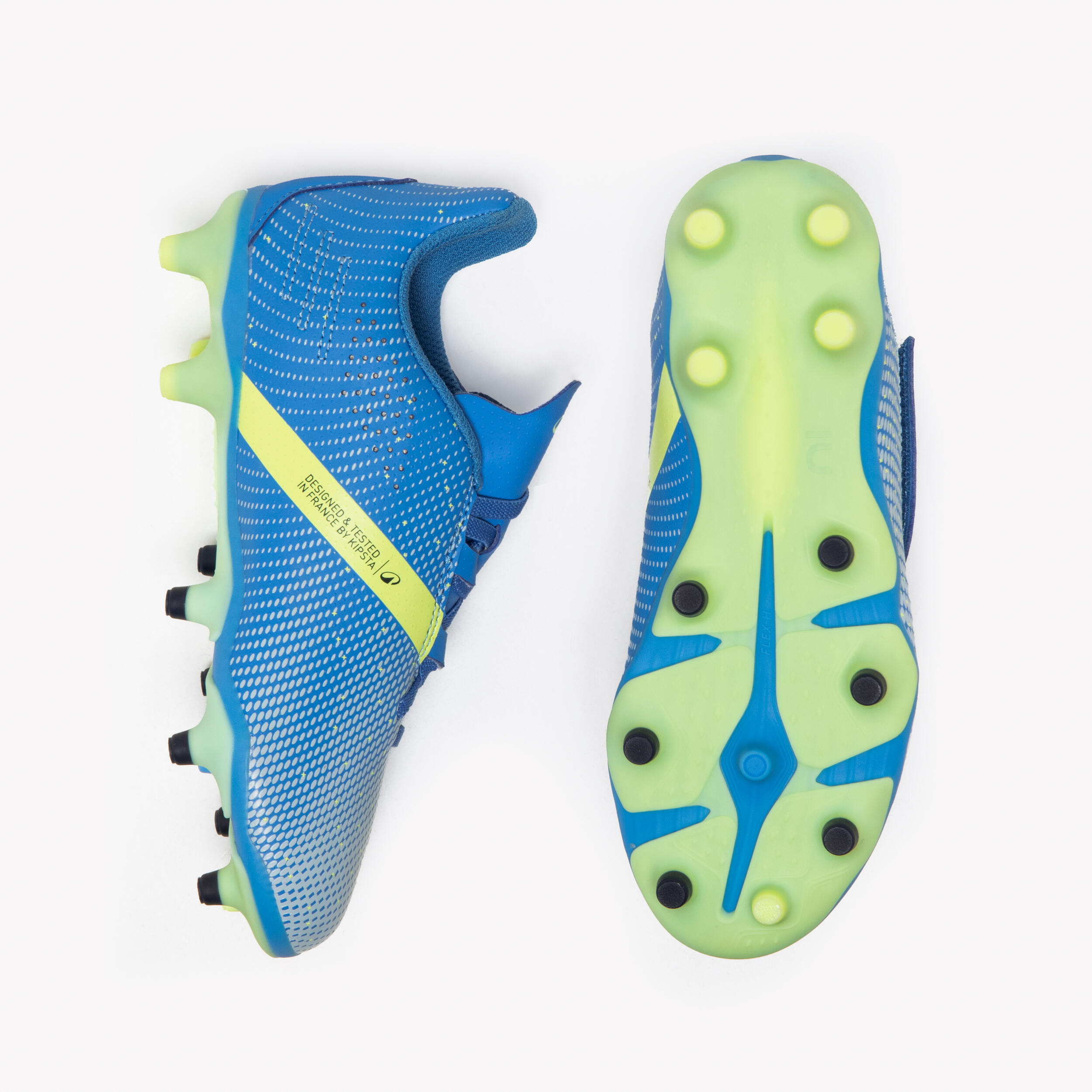 Nogometne čevlje smo razvili v sodelovanju s strokovnjakom za stopala, ki je posebej specializiran za šport in poklicni nogomet. Skupaj smo zasnovali različne tehnologije in koncepte. Posebej smo zasnovali število in položaj čepov na podplatu, da bi zagotovili najboljše razmerje med oprijemom in udobjem.