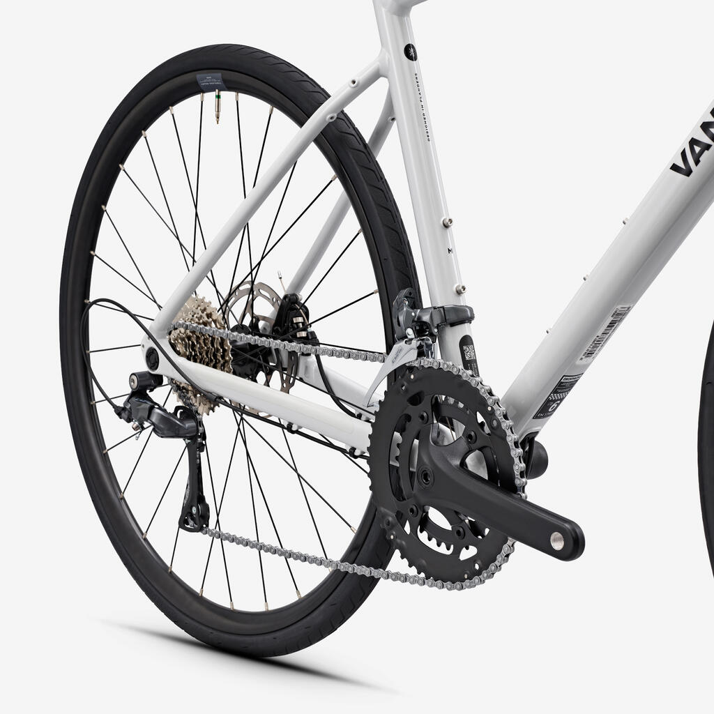 Uživajte v zanesljivosti 2x8-stopenjskega pogonskega sistema Shimano Claris, mehanskih kolutnih zavor in 32 mm širokih pnevmatik ter odkrijte radosti cestnega kolesarjenja!