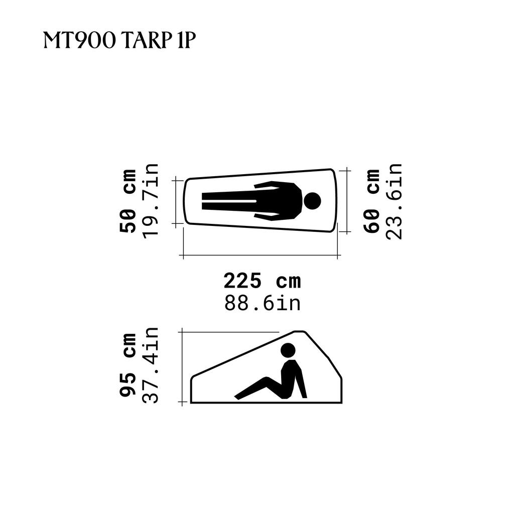 Širina spalnega prostora: 60 cm pri glavi in 50 cm pri nogah. Višina prostora: 95 cm. 2 aluminijasta droga (vsak iz 2 zaskočnih obročev) pri nogah povečata uporabno prostornino. 60 cm globoka stranska predprostora (prostora za shranjevanje med spalnim prostorom in ponjavo) za shranjevanje 50 do 60 litrskega nahrbtnika, gorniške opreme in pohodnih čevljev.