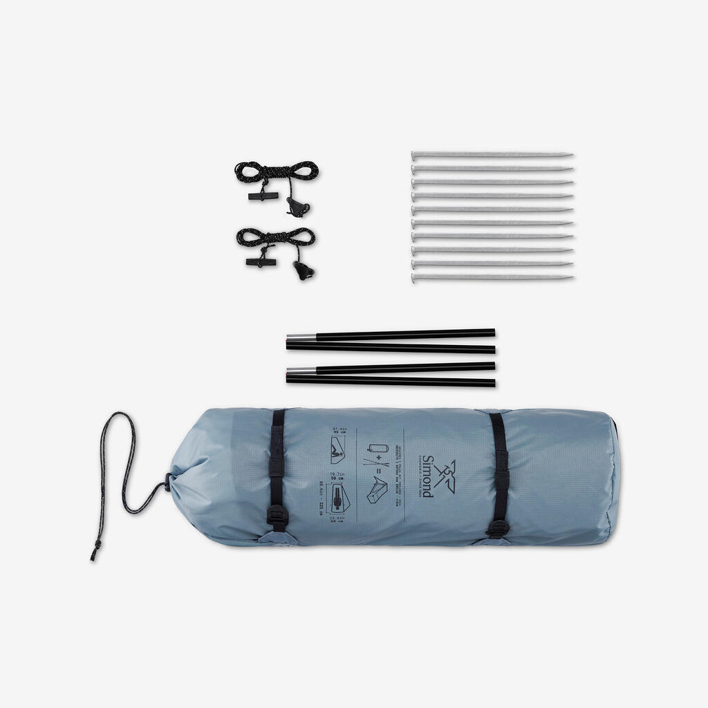 Šotor za svojo strukturo potrbeuj 2 pohodniški palici (idealna višina 115 cm – največ 120 cm). Palici nista priloženi šotoru.
