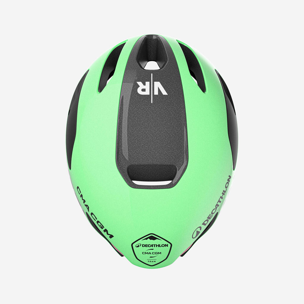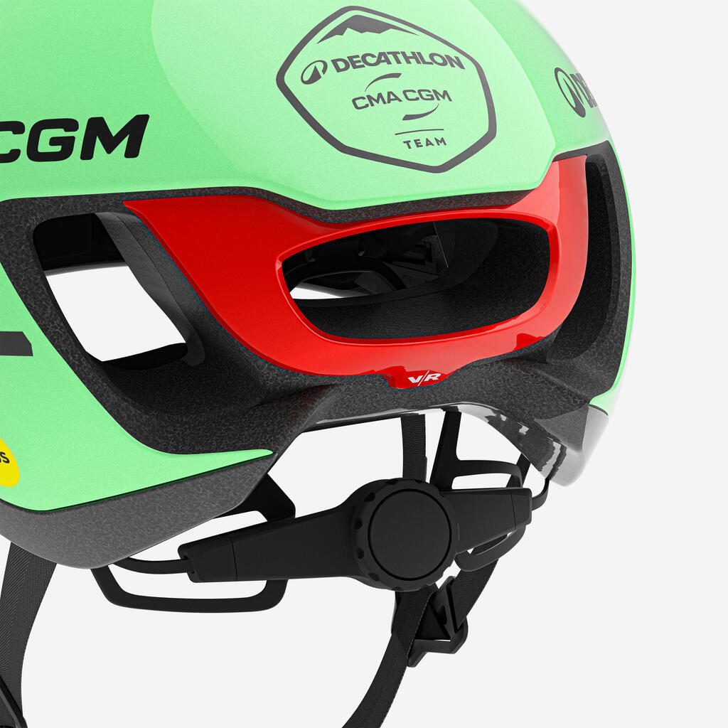 Ustvarjena za zmago. Aerodinamična in zračna: to je čelada, ki jo ekipa Decathlon AG2R La Mondiale uporablja na dirkah.