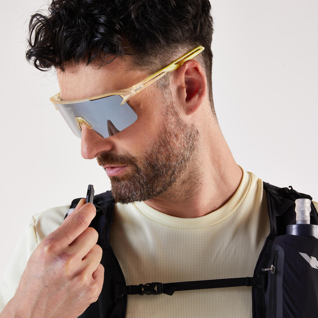 S sistemom za zategovanje na sprednji strani, katerega vsi trakovi so nastavljivi po višini in zagotavljajo vrhunsko udobje, prilagodite telovnik svoji postavi. Po pogovorih z našimi športnicami iz ženske ekipe za trail tek Kiprun smo razvili nov sistem zategovanja na strani za boljše splošno prileganje in večjo stabilnost bidona za vodo.