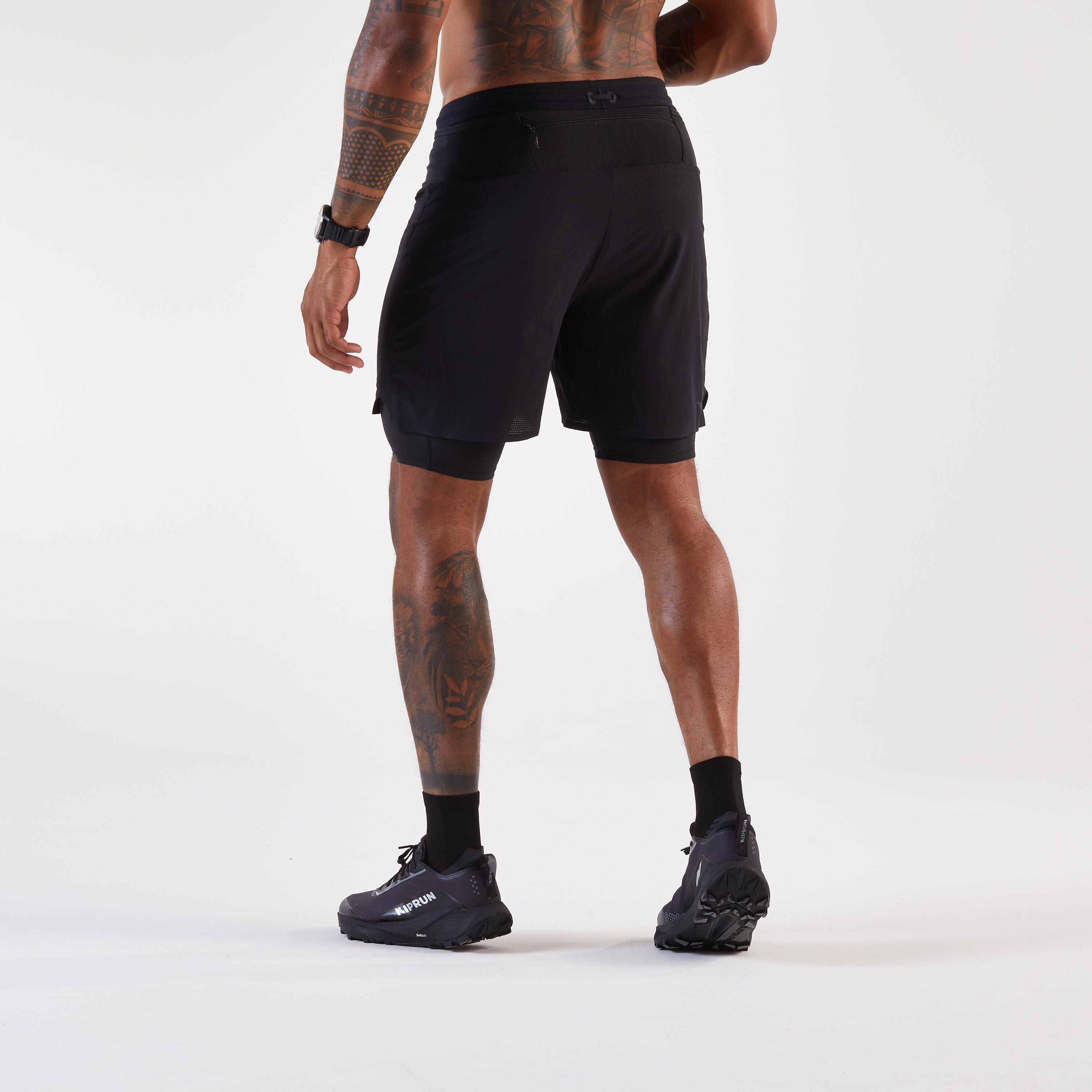 Te kratke hlače za tek ali tek po terenu 2 v 1 se odlikujejo po sestavnih delih, ki so del njihove zasnove in so različni spredaj in zadaj, da se optimizira odvajanje znoja. Različni materiali nudijo najboljšo kombinacijo svobode gibanja in obvladovanja potenja, tako da ne boste niti opazili, da ste pretekli kilometre.