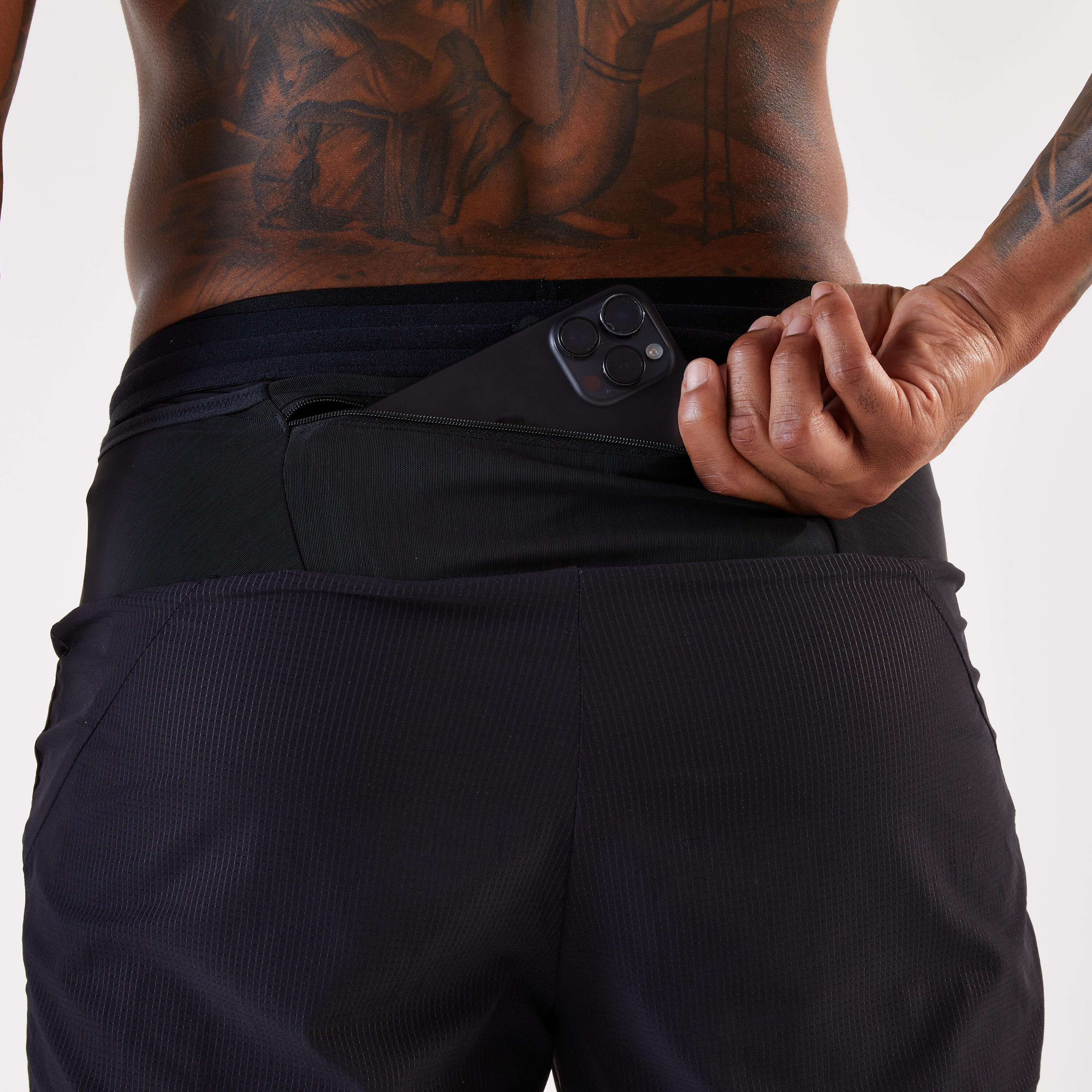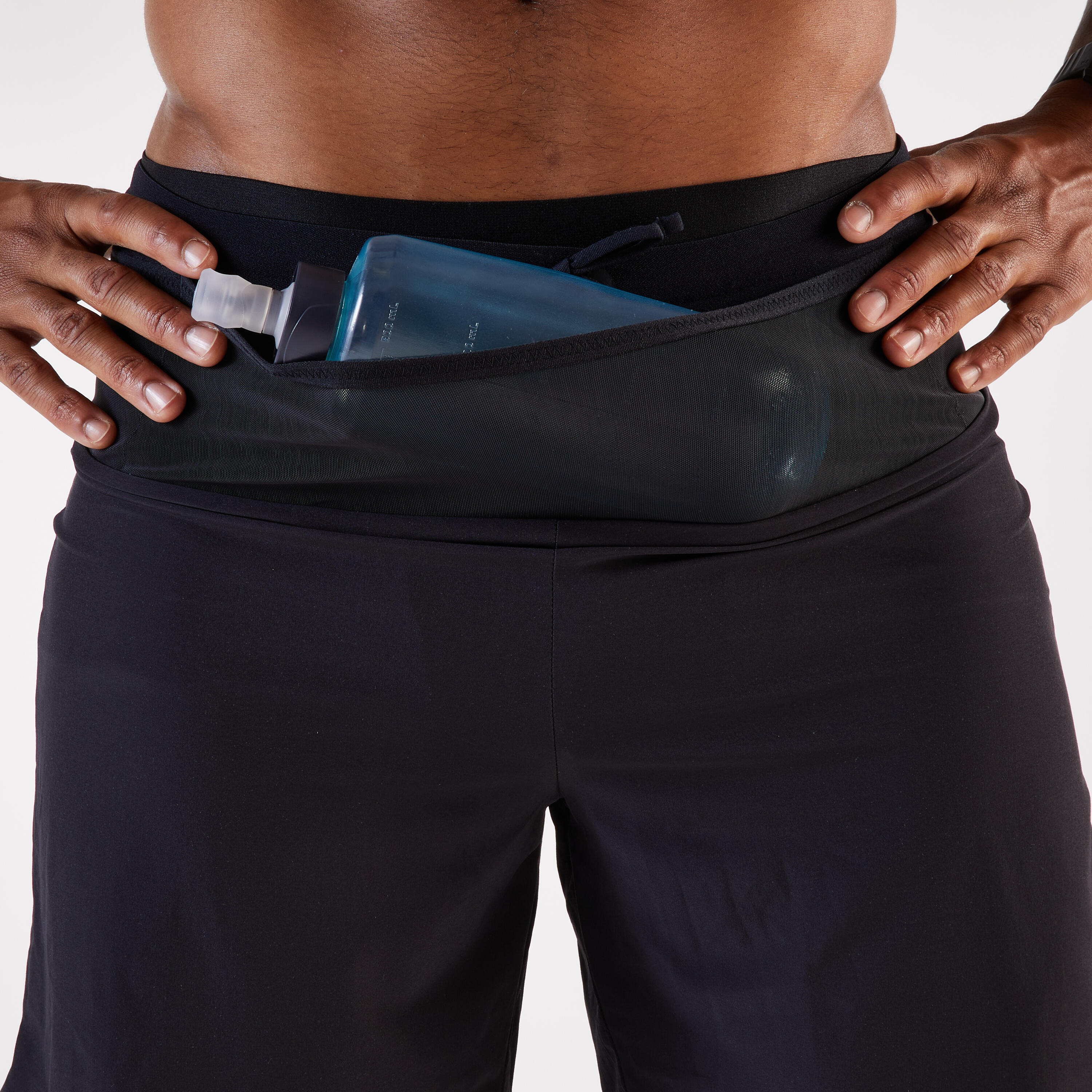 Pri premagovanju daljših razdalj so udobje pri nošenju, hidracija in prehrana sta pa prioriteti. Te kratke hlače imajo 5 žepov, v katerih lahko nosite 500-ml bidon, pametni telefon, ključe in 4 gele ali ploščice. Vse to vam olajša tek in omogoča boljšo izkušnjo teka, saj ima pametno nameščene žepe in odlično podporo.
