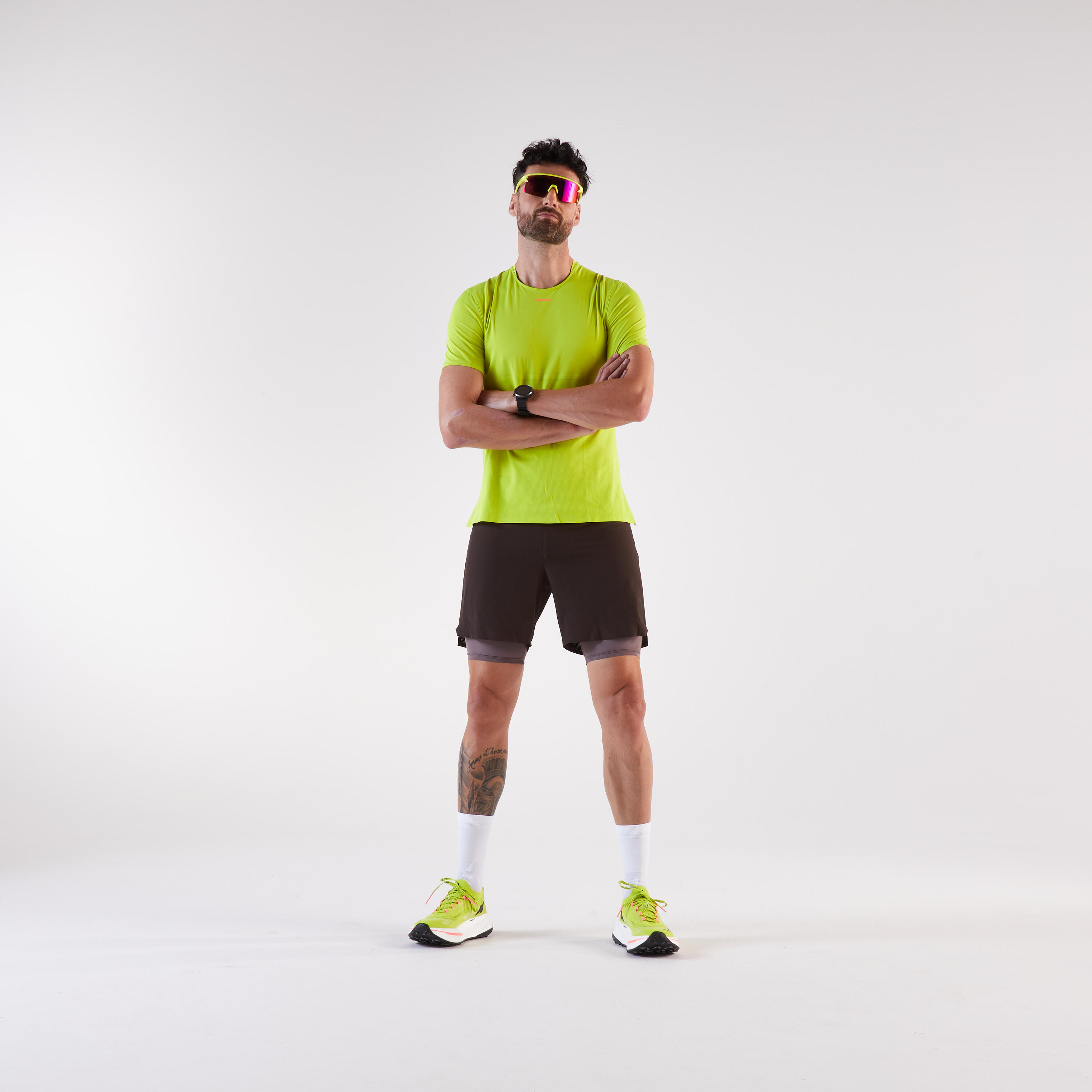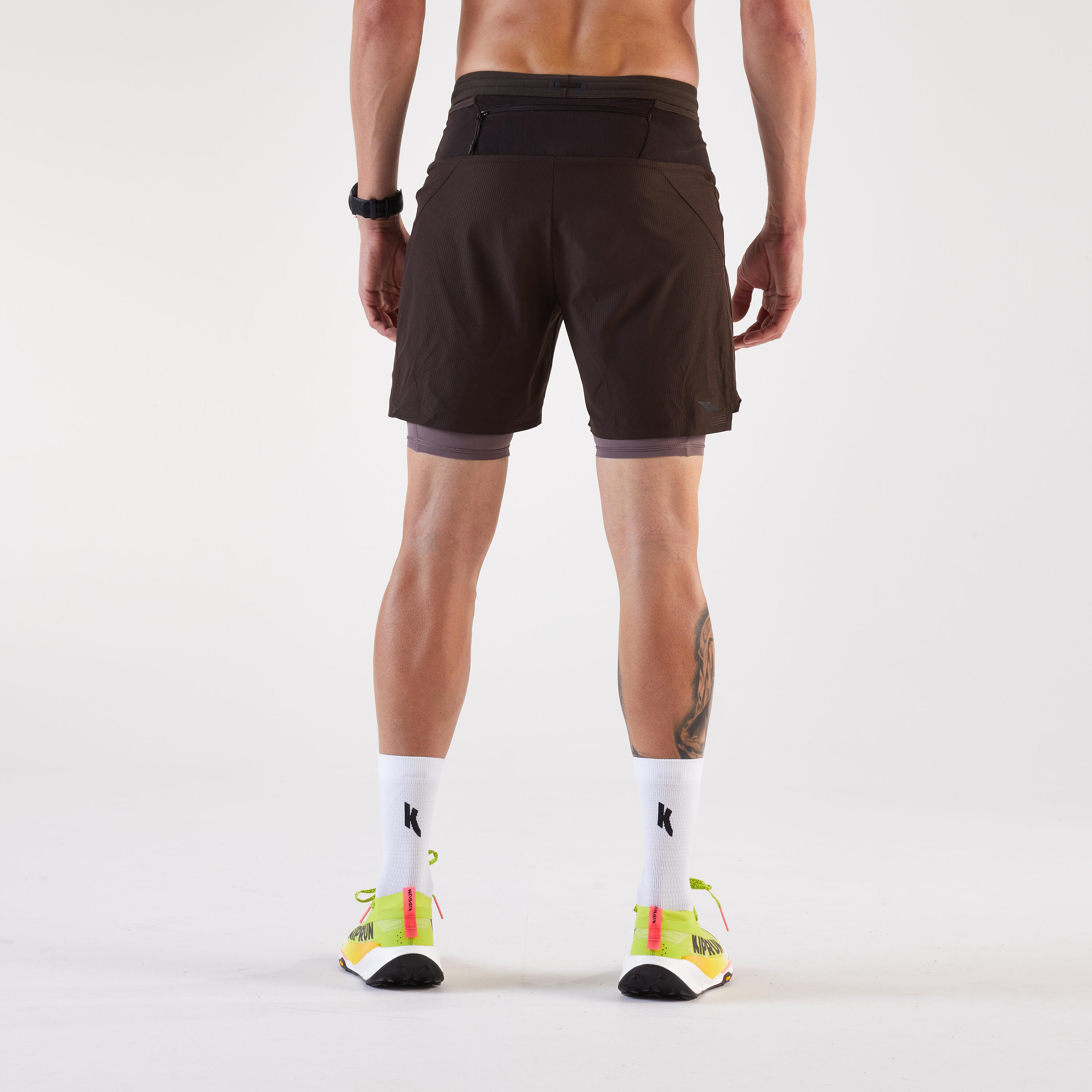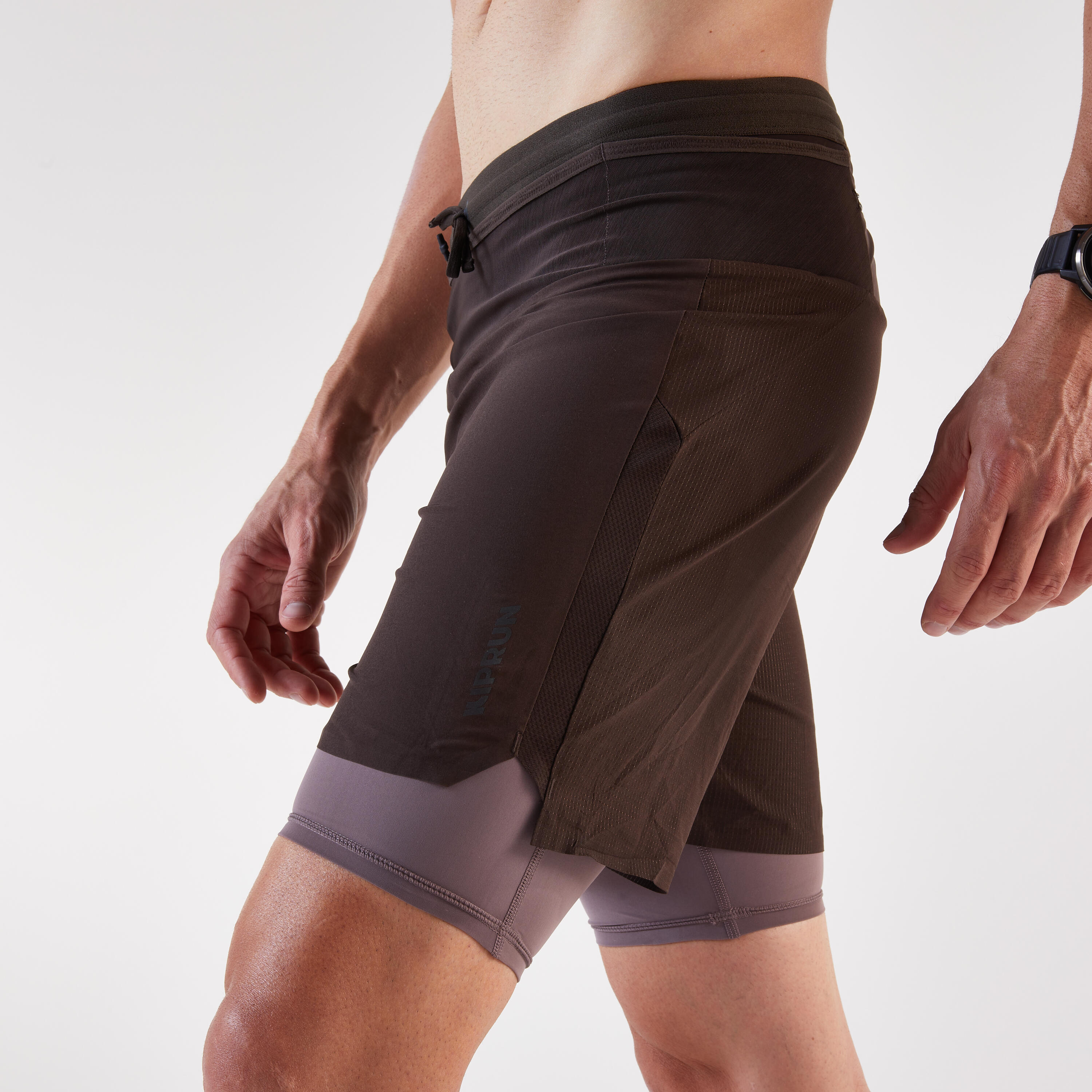 Te kratke hlače za tek ali tek po terenu 2 v 1 se odlikujejo po sestavnih delih, ki so del njihove zasnove in so različni spredaj in zadaj, da se optimizira odvajanje znoja. Različni materiali nudijo najboljšo kombinacijo svobode gibanja in obvladovanja potenja, tako da ne boste niti opazili, da ste pretekli kilometre.