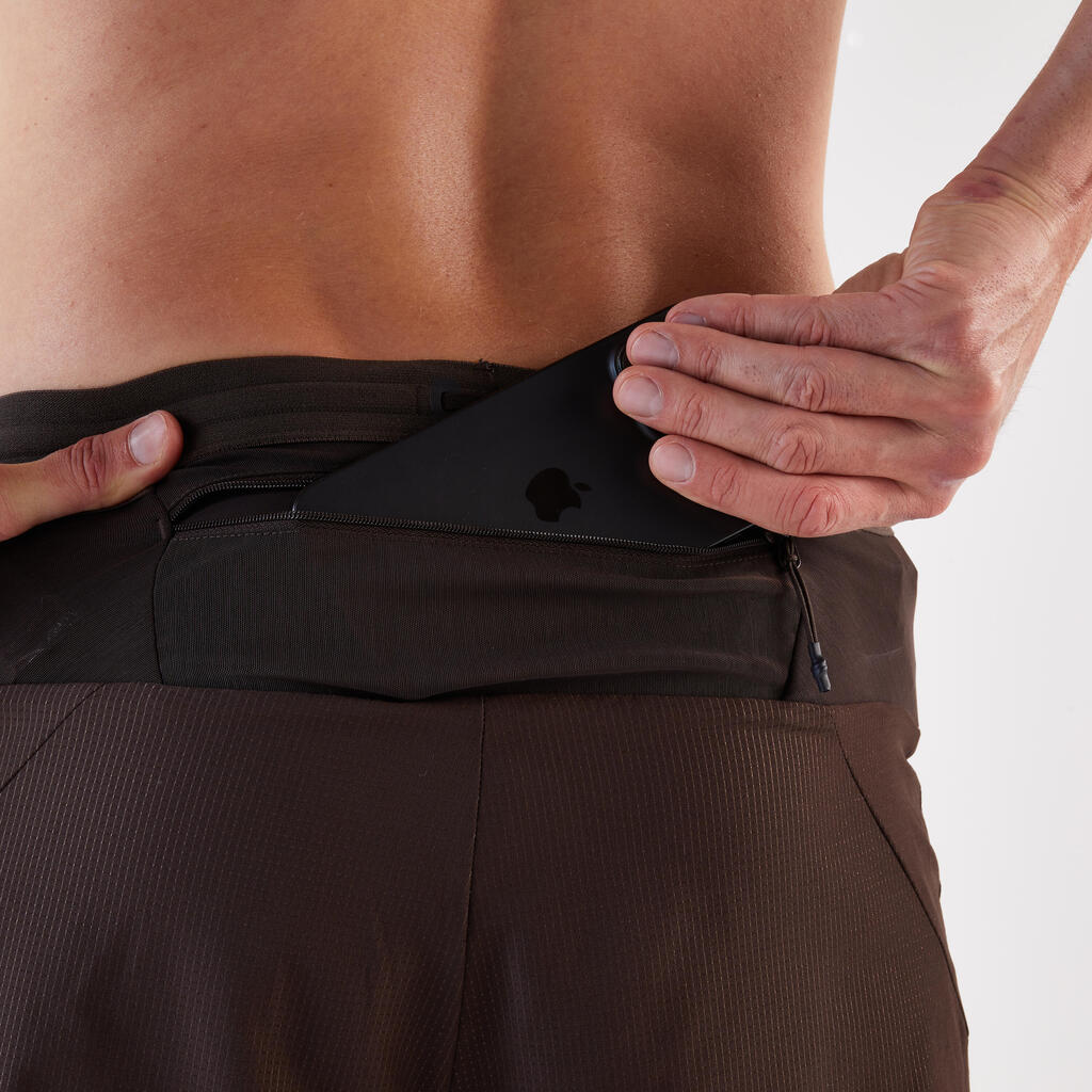 Pri premagovanju daljših razdalj so udobje pri nošenju, hidracija in prehrana sta pa prioriteti. Te kratke hlače imajo 5 žepov, v katerih lahko nosite 500-ml bidon, pametni telefon, ključe in 4 gele ali ploščice. Vse to vam olajša tek in omogoča boljšo izkušnjo teka, saj ima pametno nameščene žepe in odlično podporo.