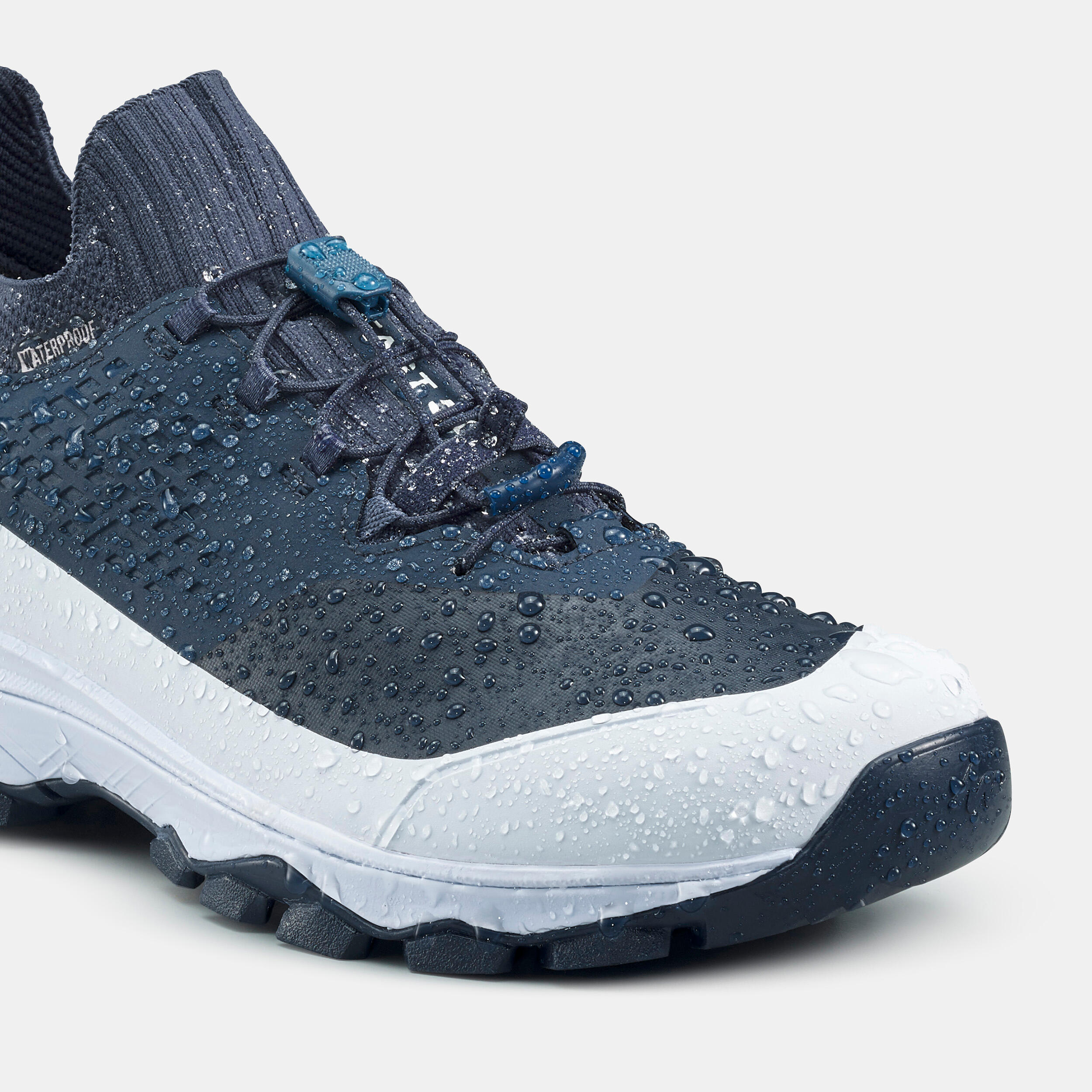 V laboratoriju obutev namestimo na mehansko okončino, ki simulira hojo, in jo do polovice potopimo v vodo. Tako lahko določimo, koliko časa in prehojenih kilometrov bo obutev ostala suha. Tako se prepričamo, da bo obutev zdržala v dejanskih pogojih, na terenu in v dežju.