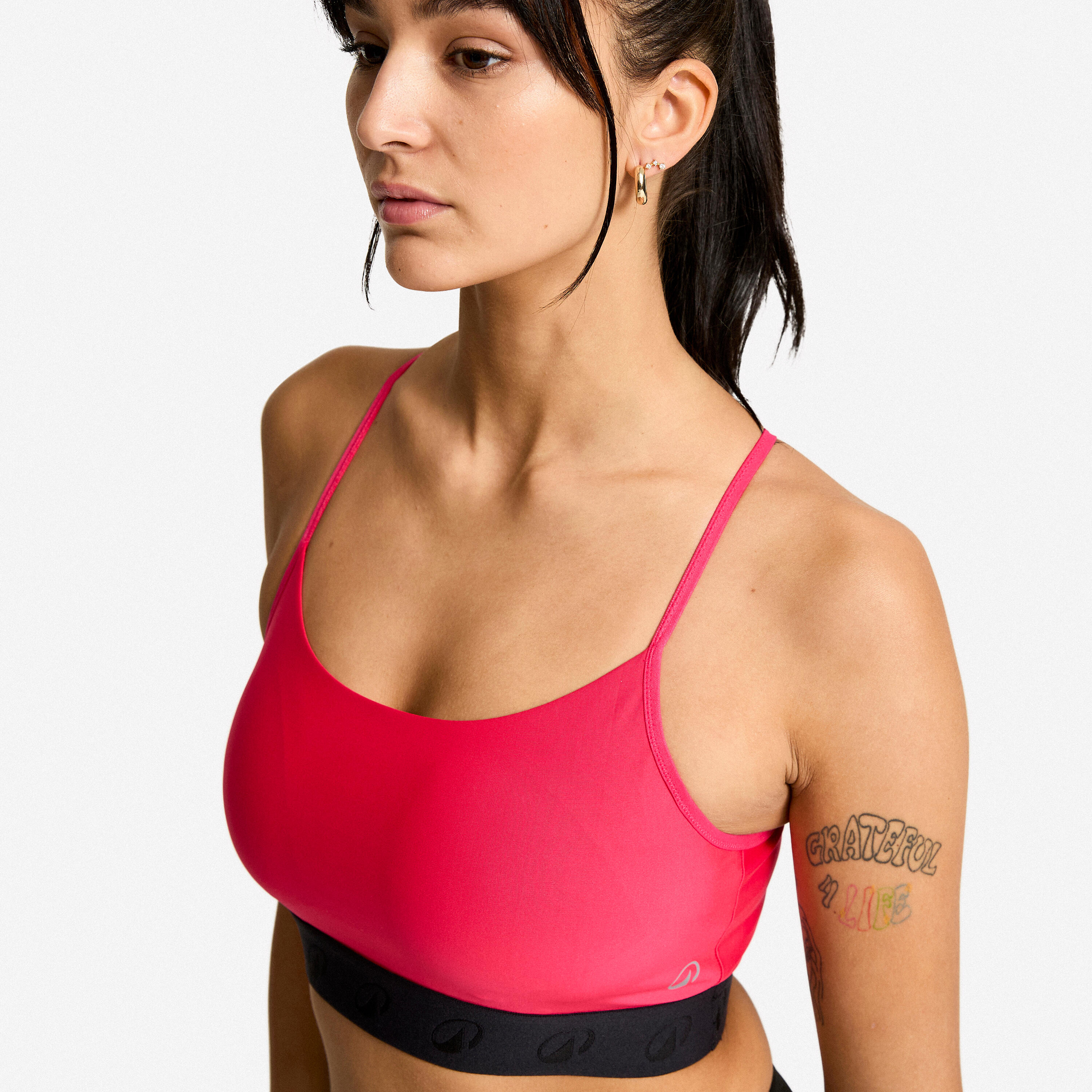 To smo imeli v mislih, ko smo oblikovali ta nedrček. Všeč vam bo, da je tkanina zaradi elastana še bolj raztegljiva. Elastičen spodnji trak se med vadbo premika skupaj z vami. Nenazadnje smo se odločili za uporabo tankih, prekrižanih naramnic, da smo osvobodili lopatice.