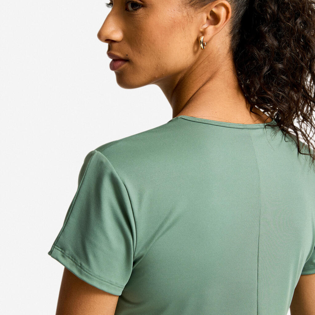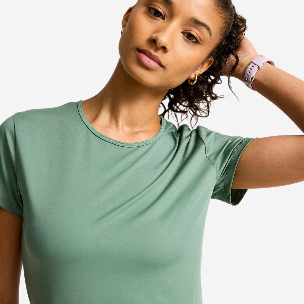 Ta majica s kratkimi rokavi in okroglim izrezom po izjemno ugodni ceni, oblikovana za vse športnike, zagotavlja vso udobje, ki ga potrebujete za vadbo.Bolj ženstven in udoben material, samo za vas.