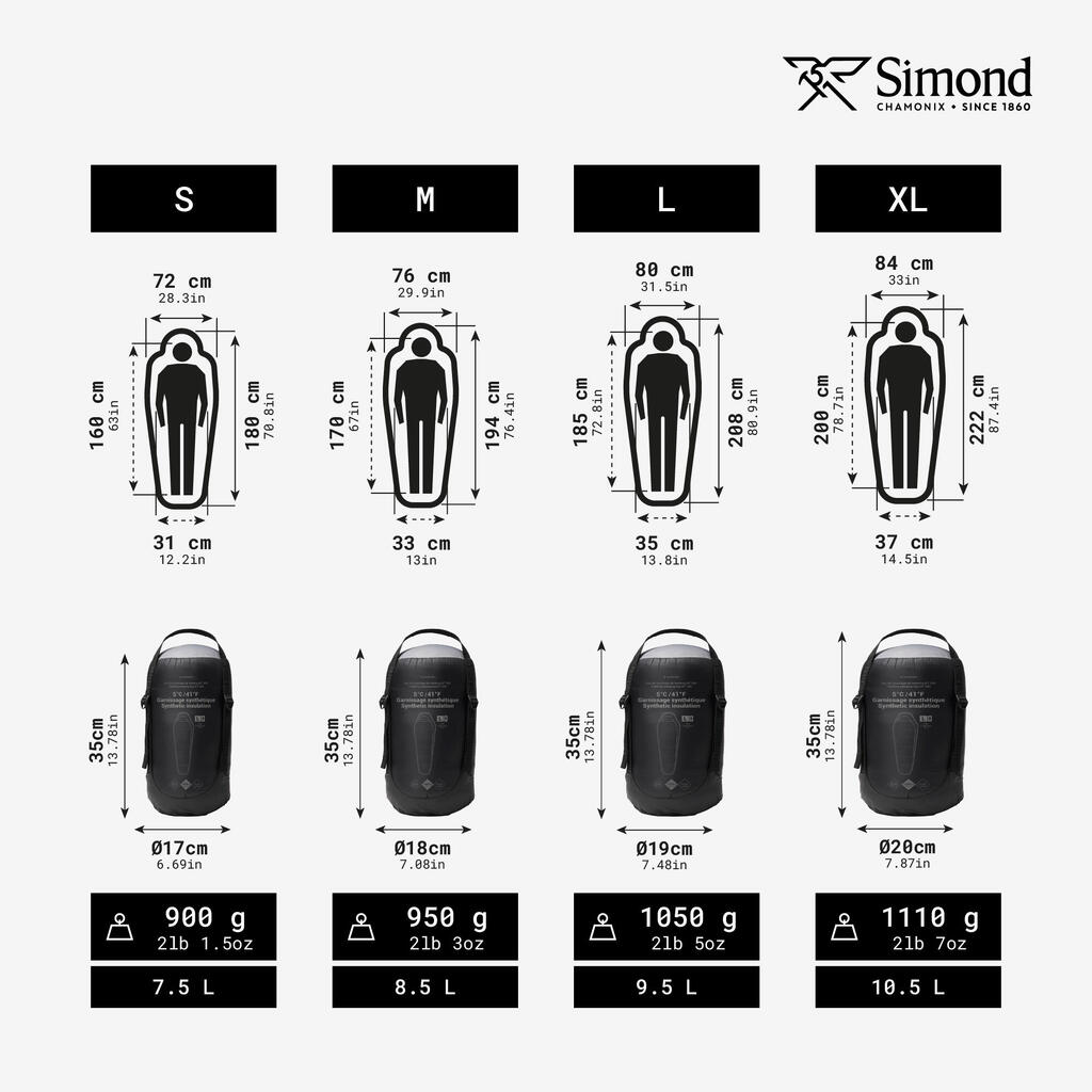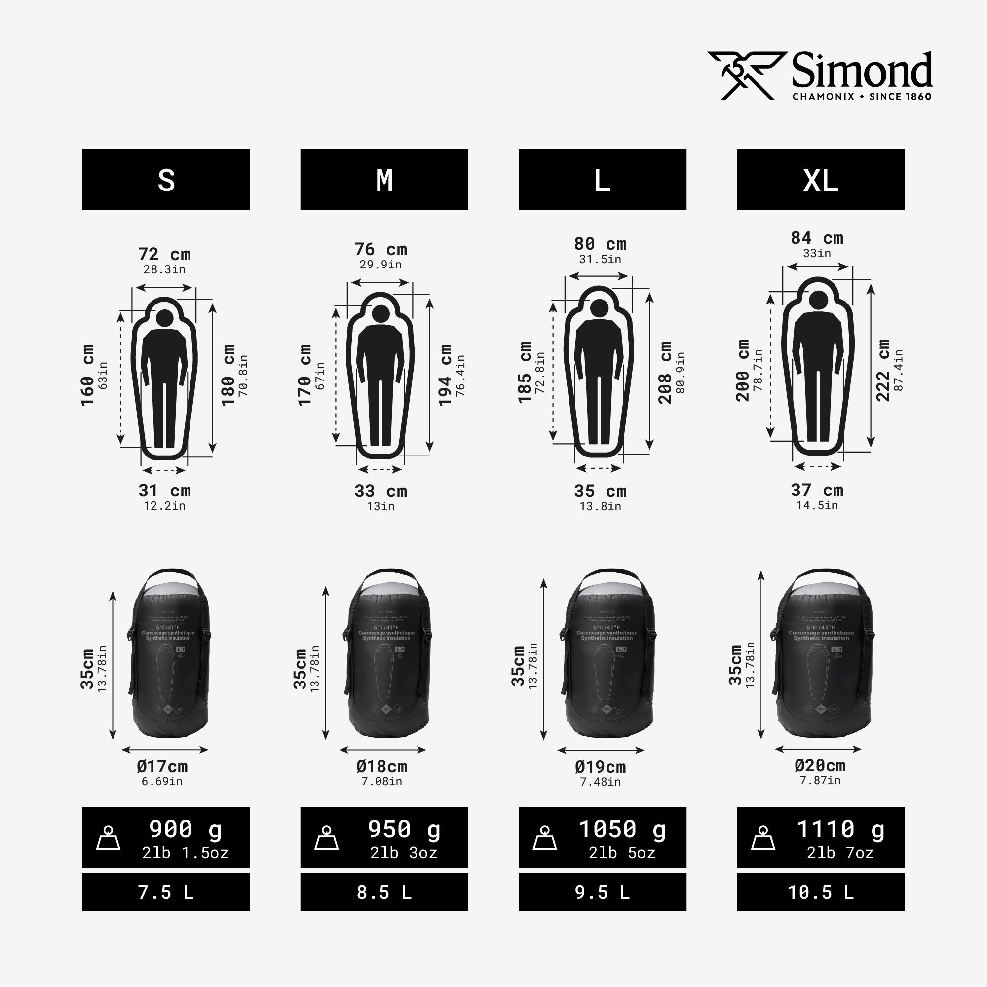 Velikost XL (uporabniki 1,85 m - 2 m) : 1110 g.Zložene mere: dolžina 35 cm, Ø 20 cm. Prostornina 10,5 l. Teža, prostornina in velikost se lahko razlikujejo glede na proizvodna odstopanja.