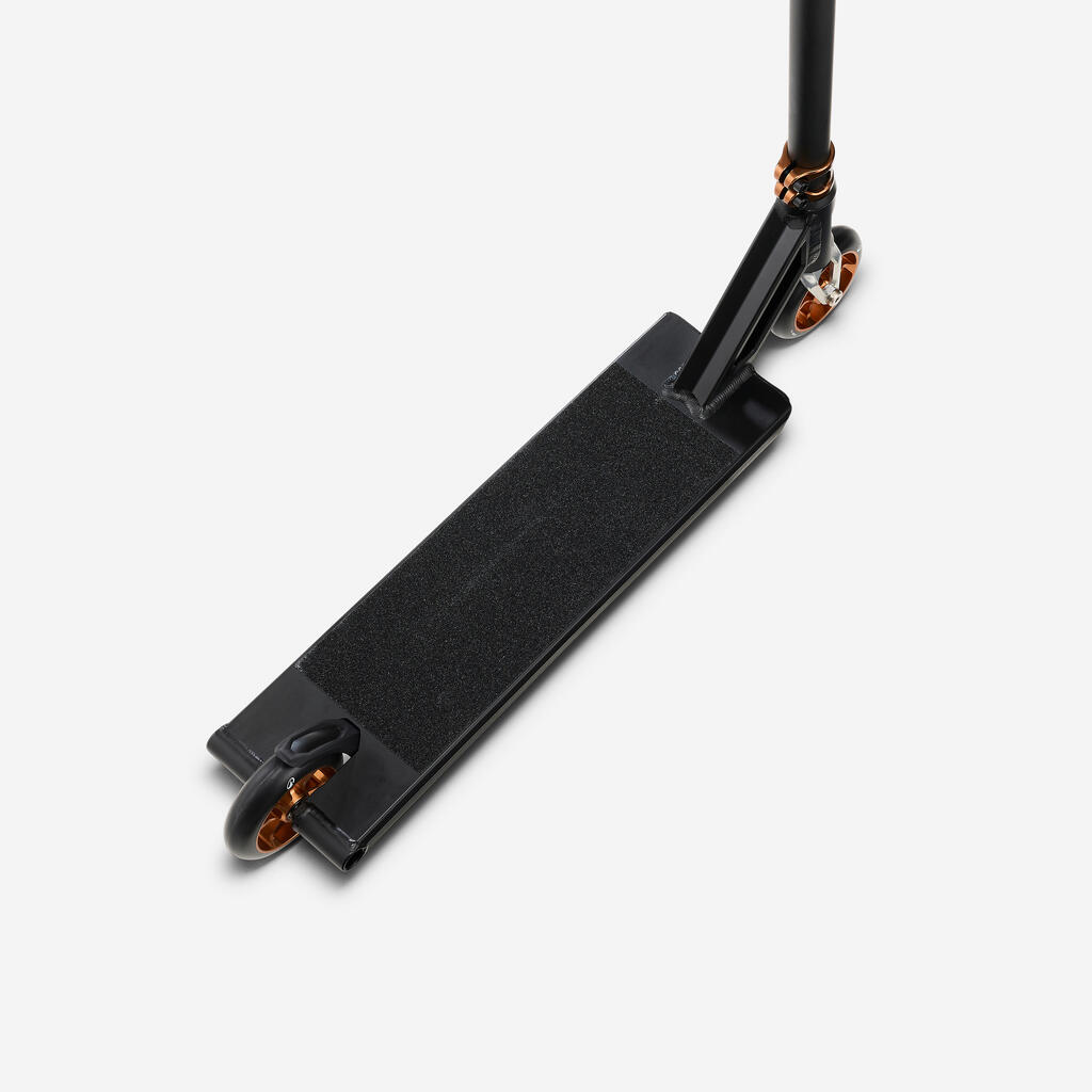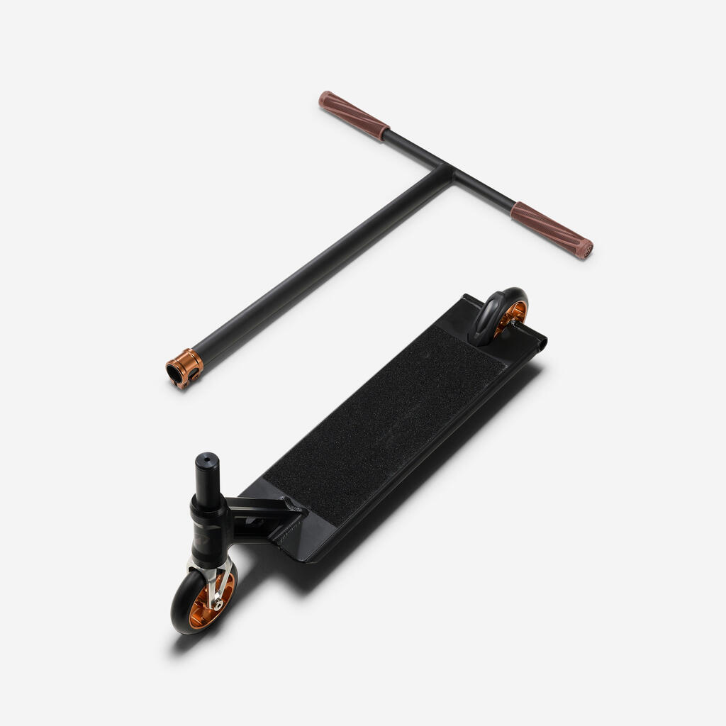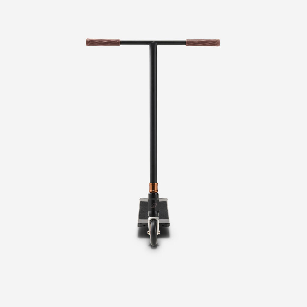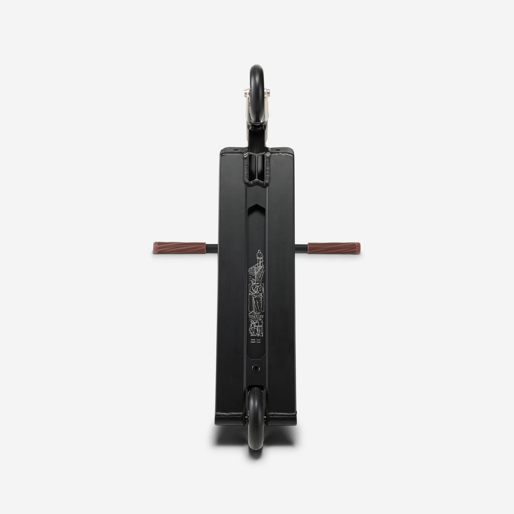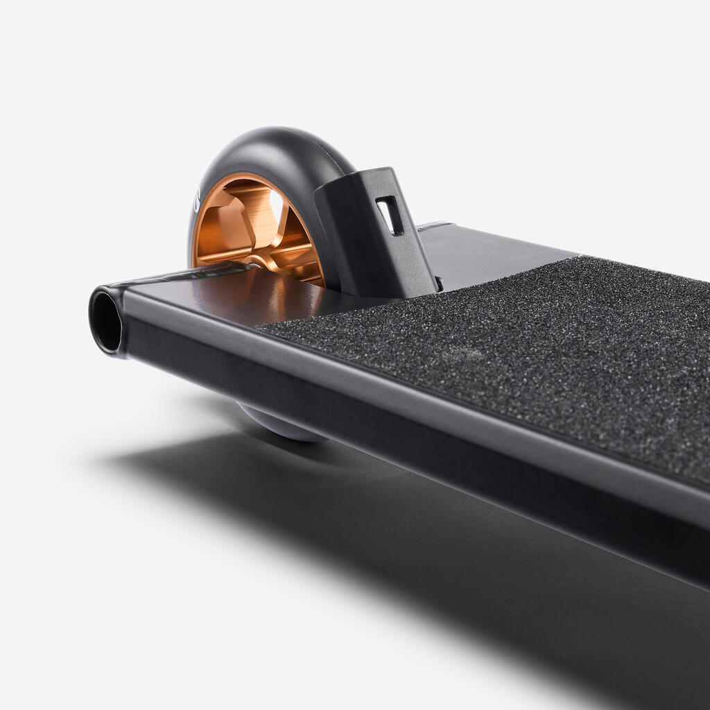 Ta prožna zavora se po vsakem pritisku povrne v izvirno obliko. Zamenjate jo lahko s sistemom ‘Brakeless’ (priložen), ki vam omogoča vožnjo brez zadnje zavore. Gre za fiksno komponento, ki služi izključno kot opora za nogo ali zaščita kolesca pred udarci in nabiranjem umazanije. Prednosti: stabilnost pri trikih, manjša teža, tišje delovanje in trpežnost. Ta sistem je namenjen naprednim uporabnikom.