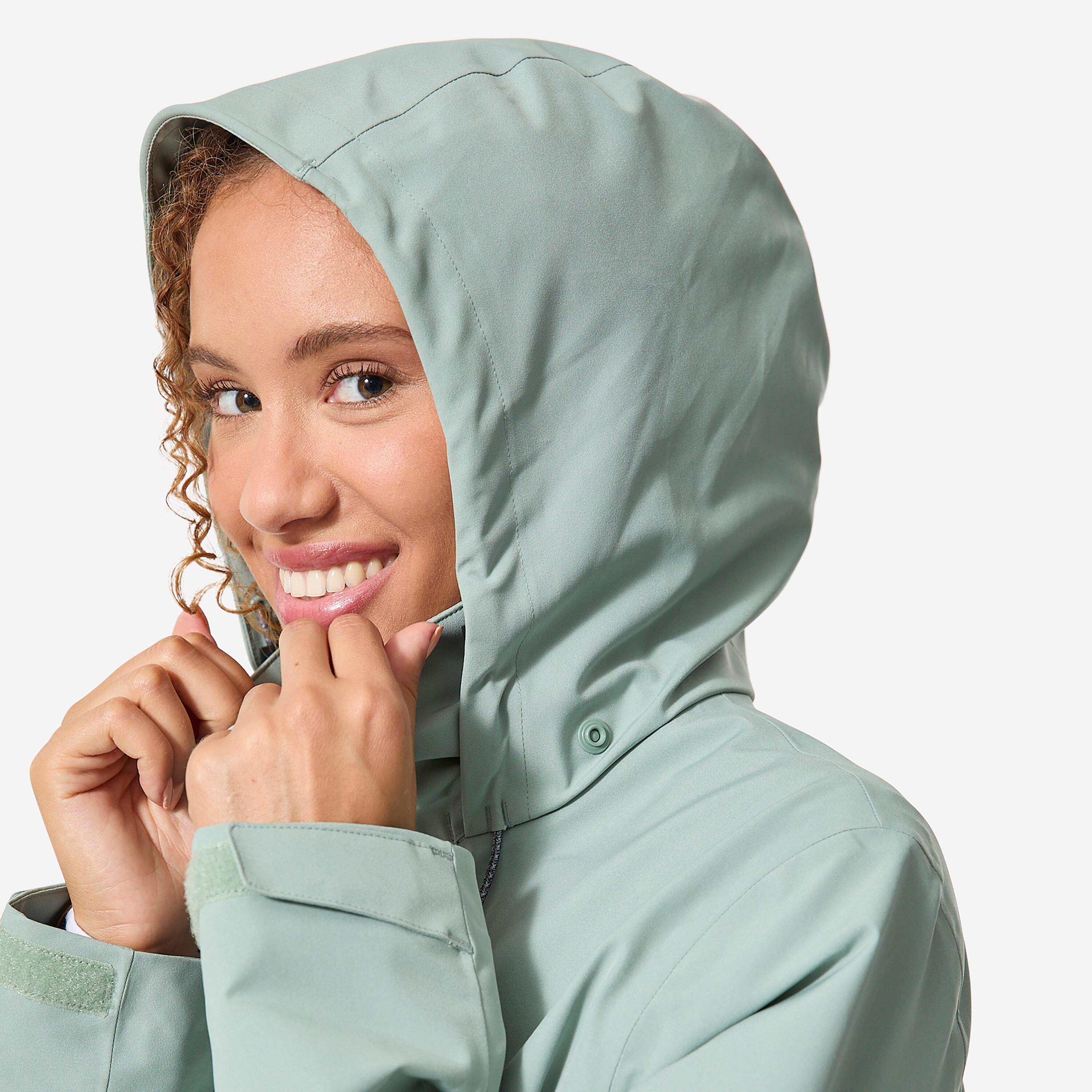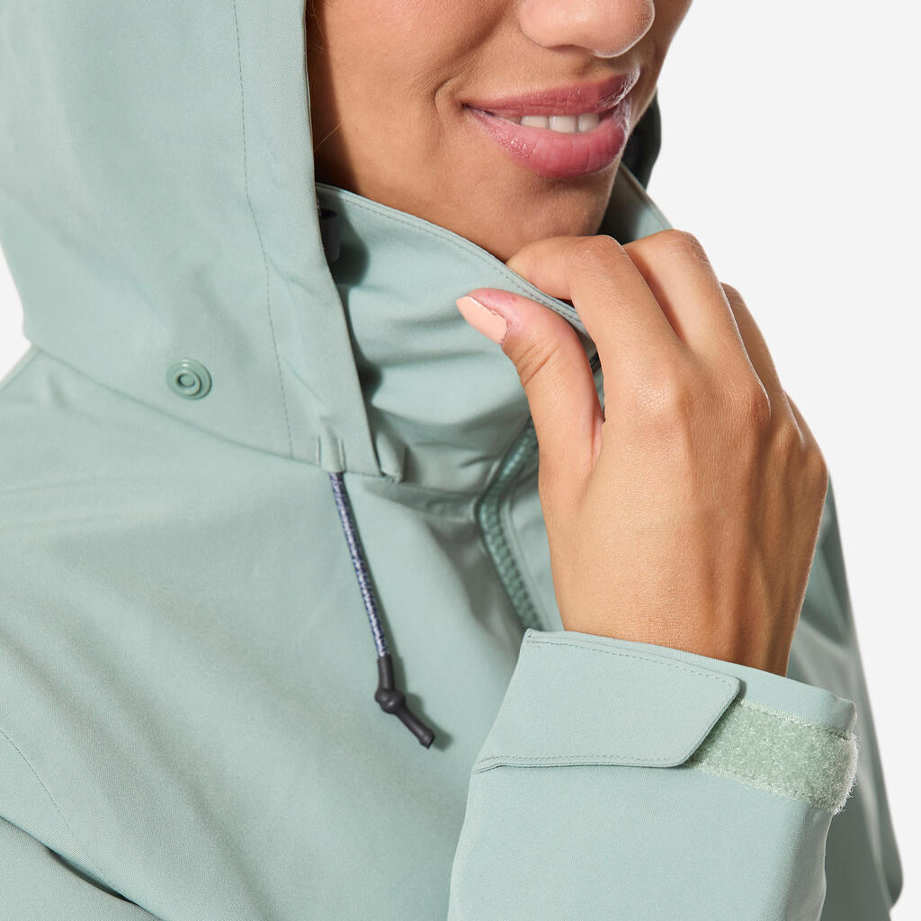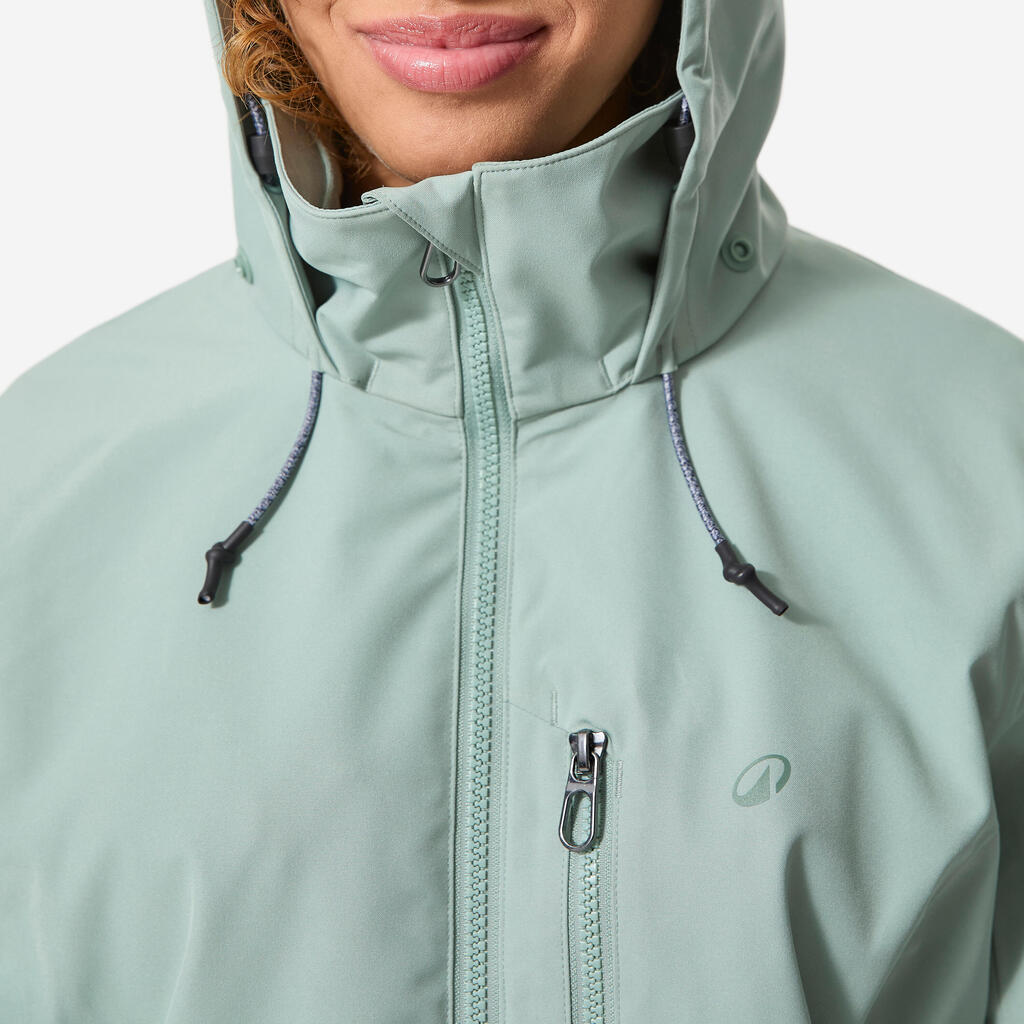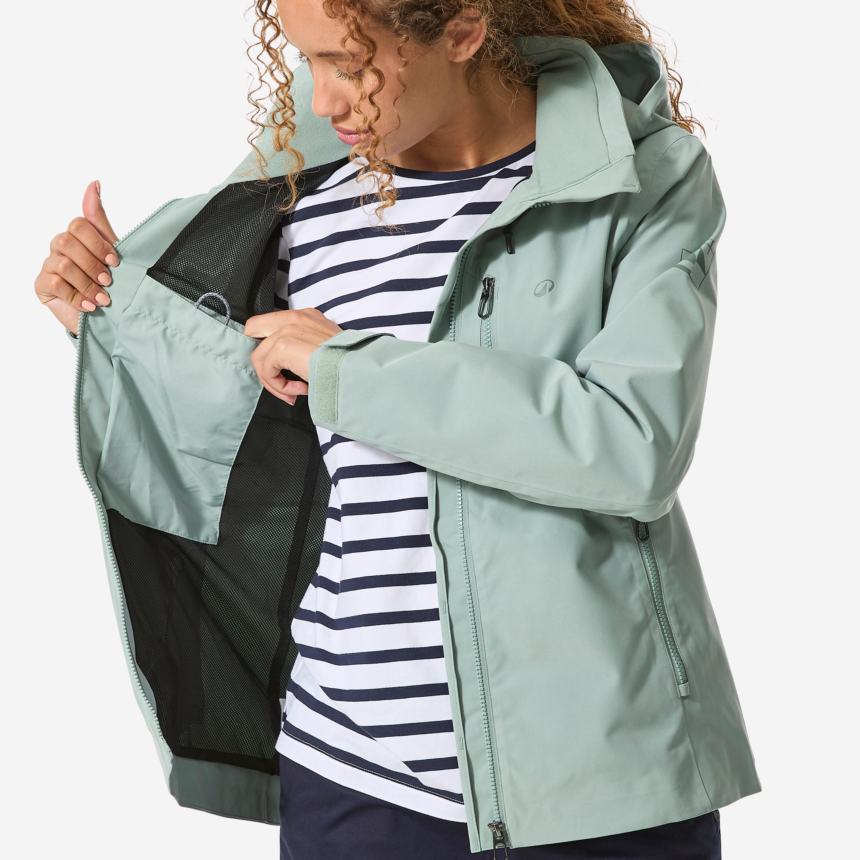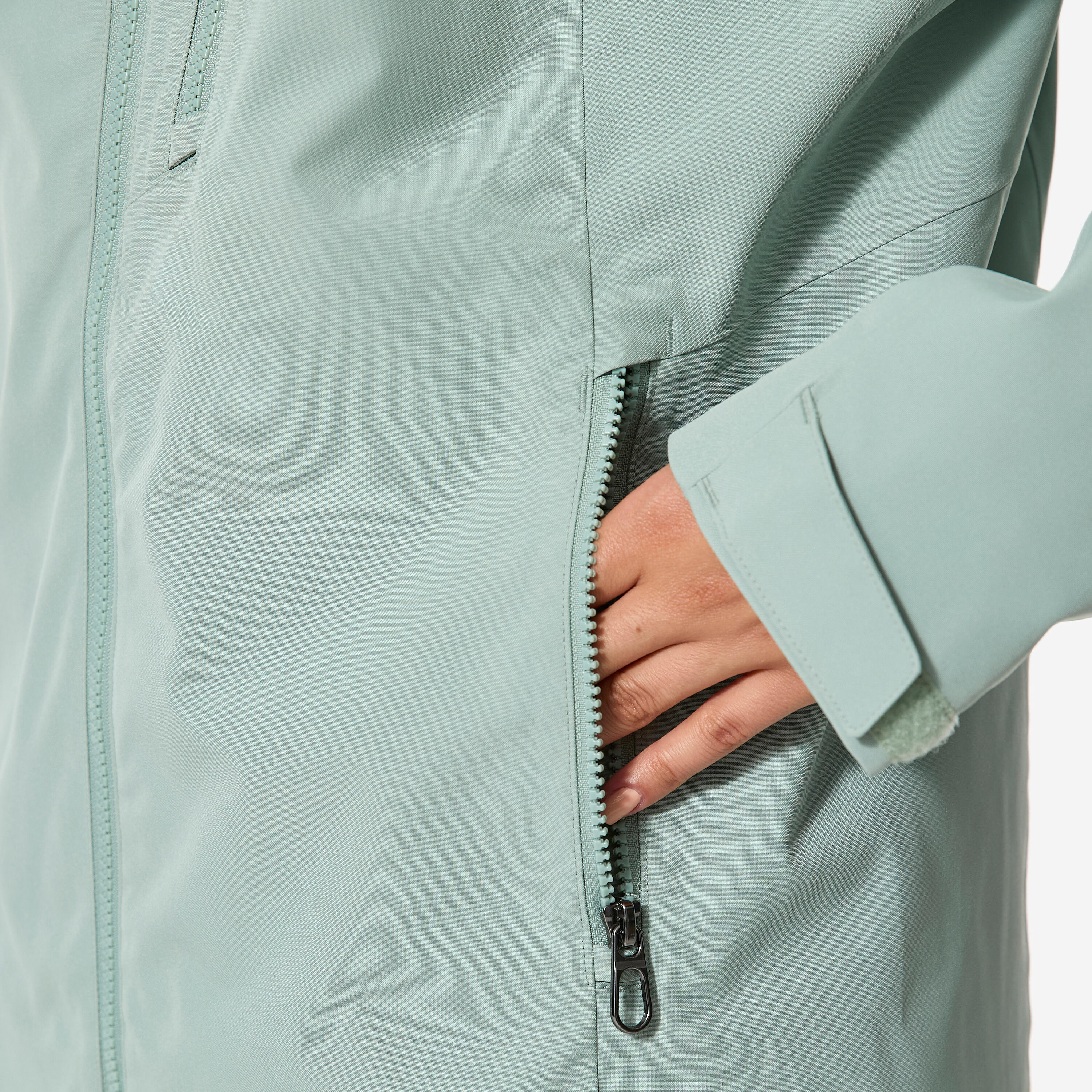 Zadrga in notranji zavihek preprečujeta vdor vode in vetra. Mehek trak na vrhu ovratnika ščiti brado.