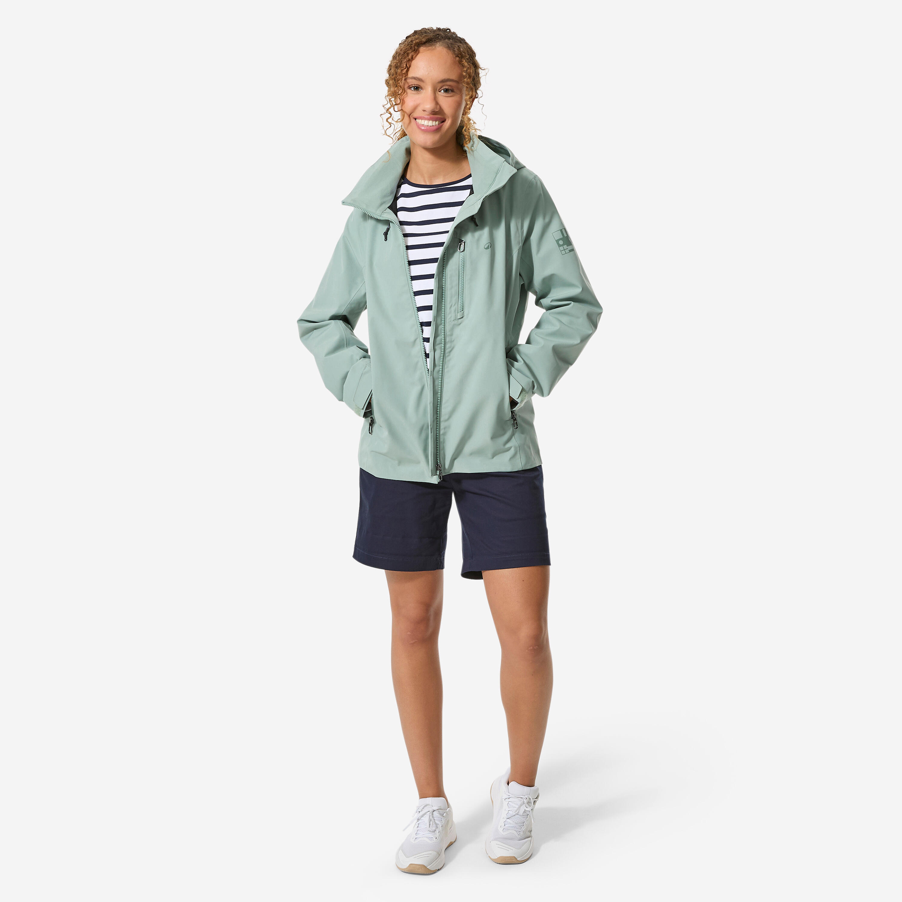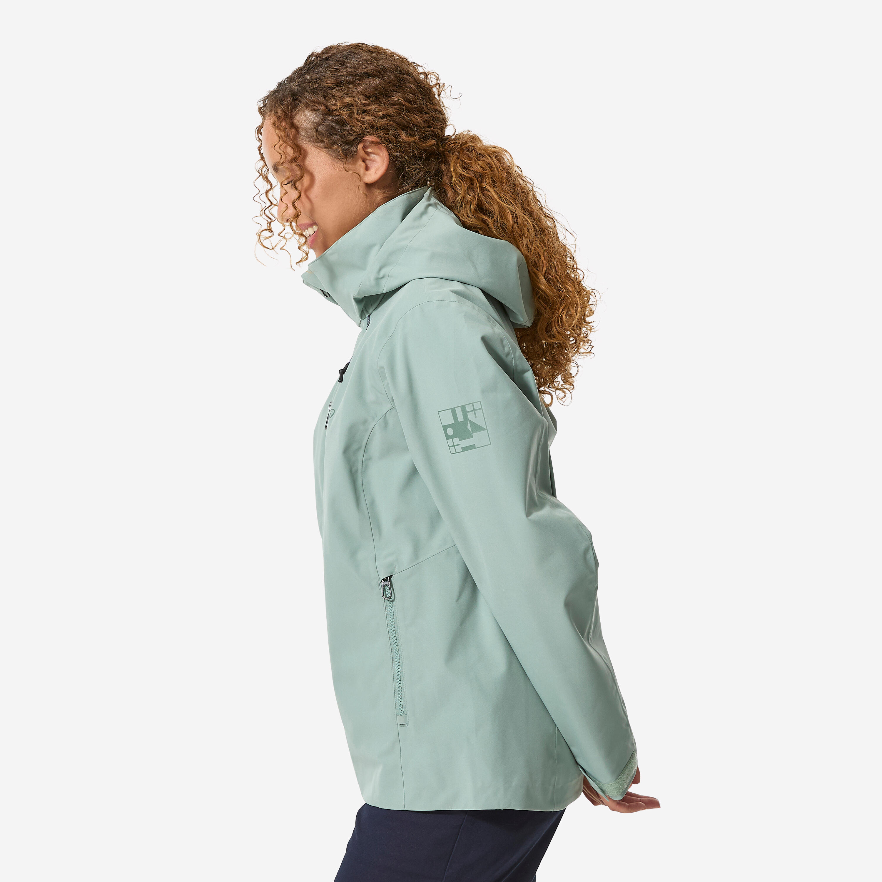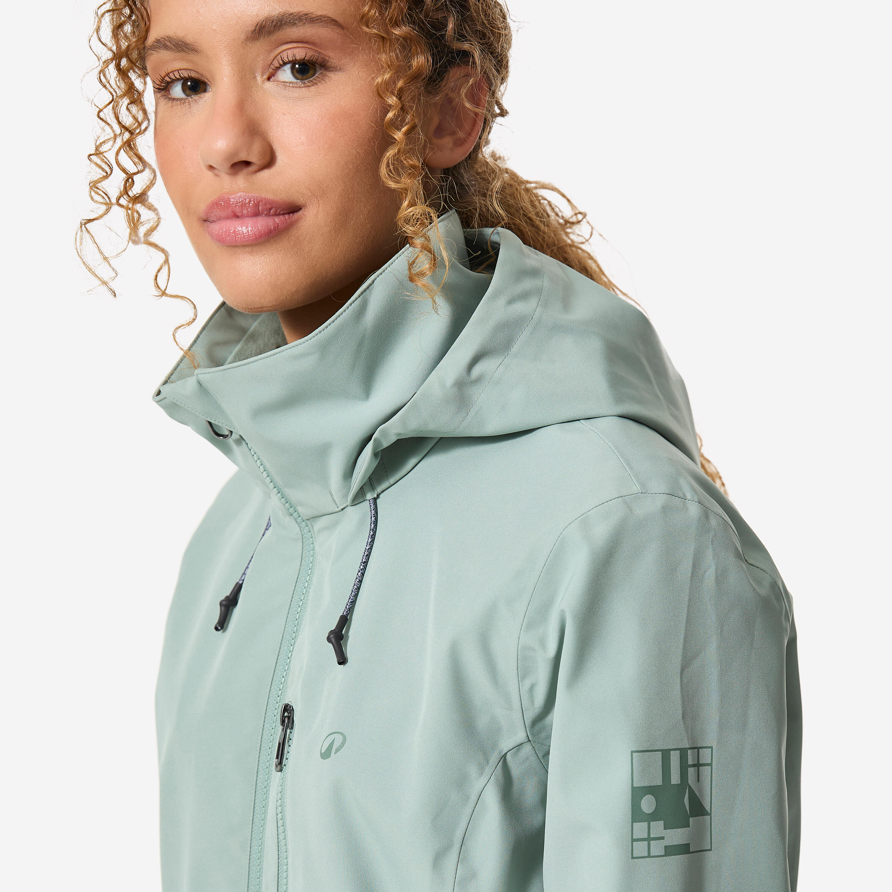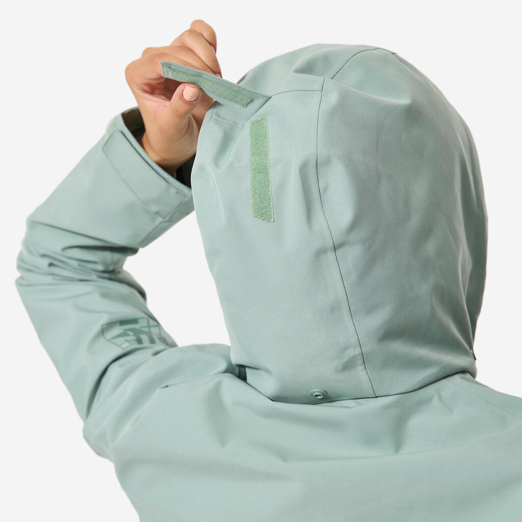 Zadrga in notranji zavihek preprečujeta vdor vode in vetra. Mehek trak na vrhu ovratnika ščiti brado.