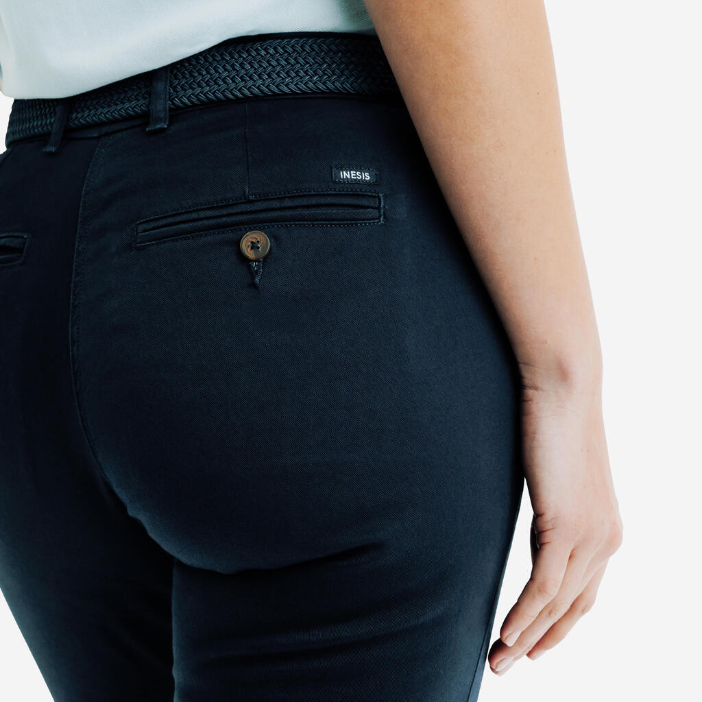 Razvili smo poseben material, bombažni serž, in mu dodali elastične lastnosti, zato je še posebej udoben za nošenje v vseh okoliščinah, od vsakodnevnih opravkov do igranja golfa.