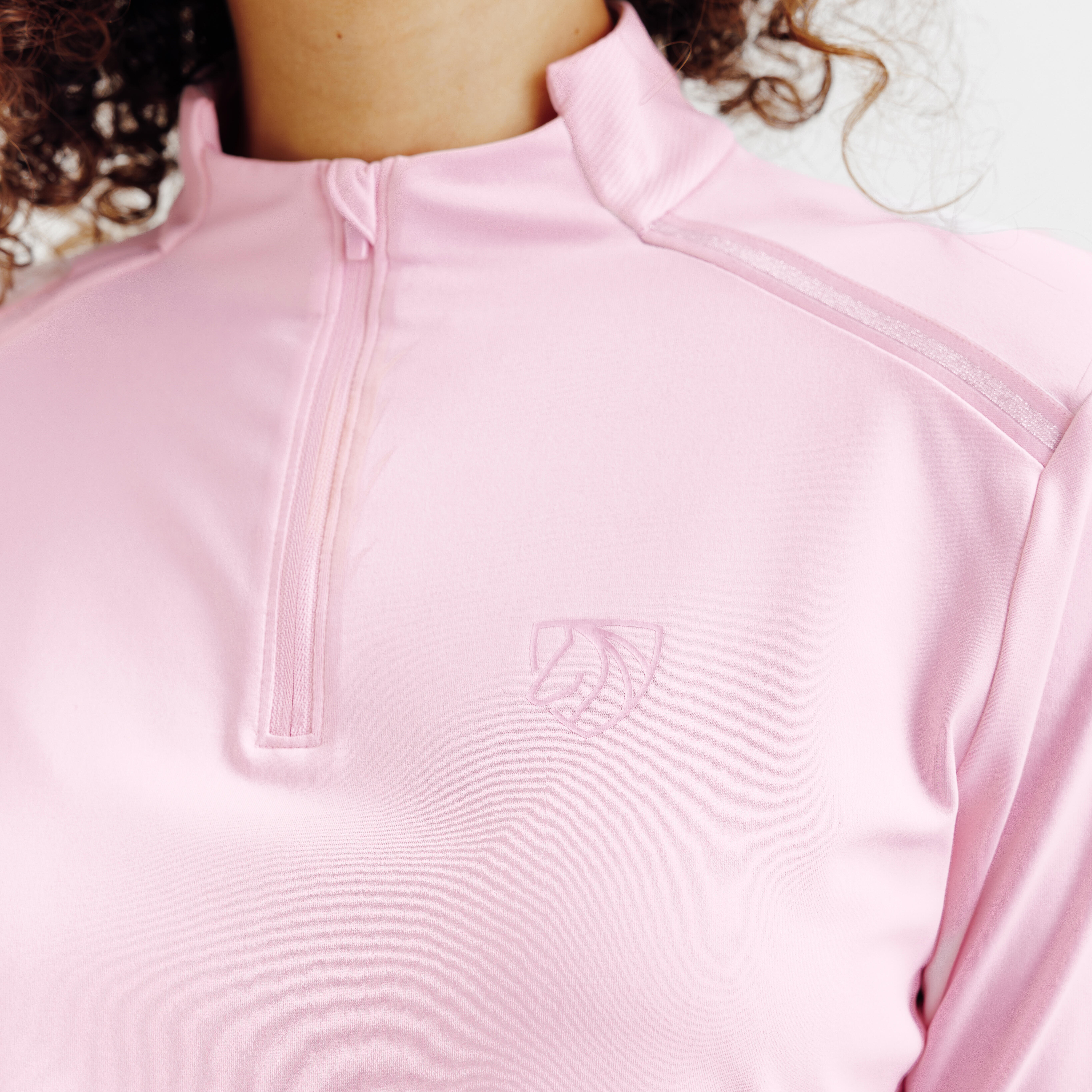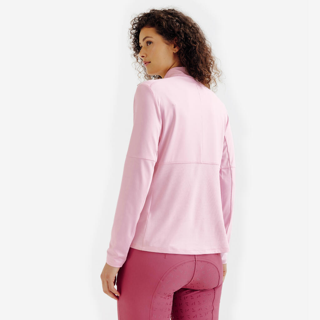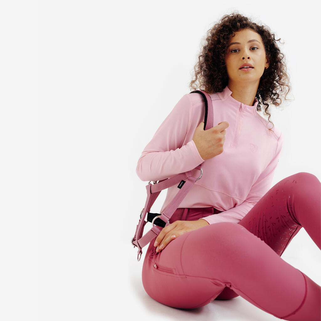 Rožnata ženska jahalna polo majica z UV-zaščito in dolgimi rokavi