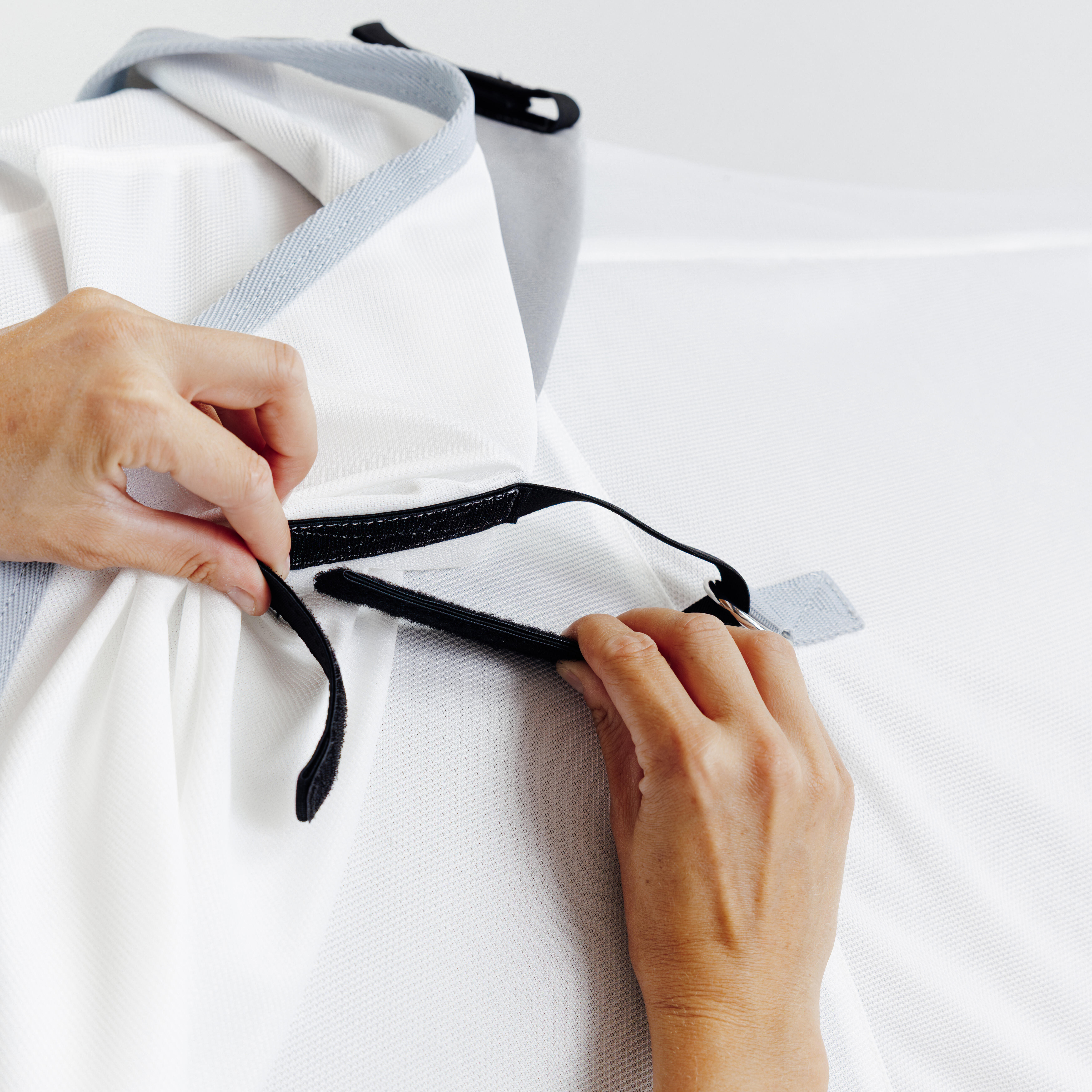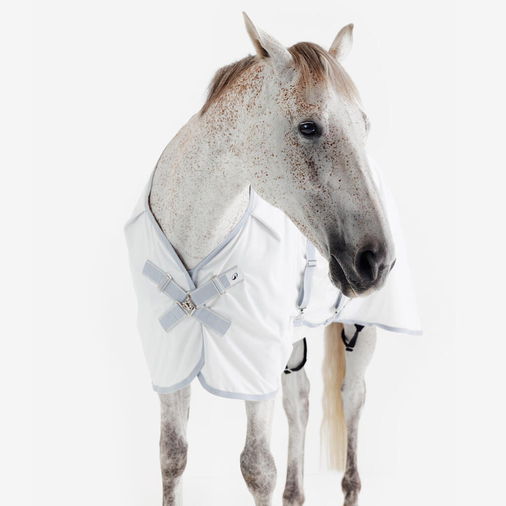 Izjemno lahek material in svetla barva ustvarjata zračen občutek ter preprečujeta nelagodje. Vaš konj bo tudi ob soncu užival v popolnem udobju.
