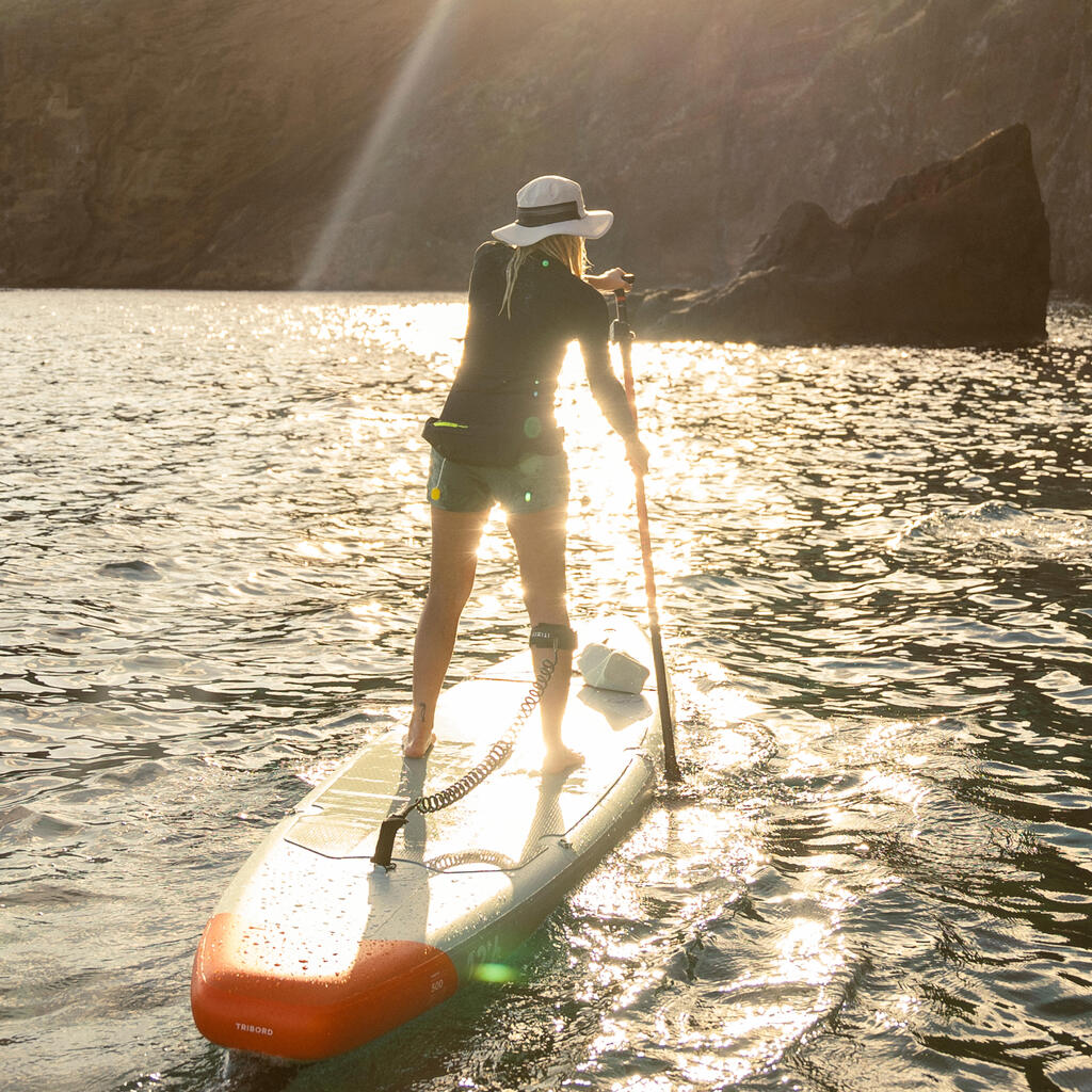 Napihnjena SUP-deska: dolžina 381 cm, širina (81 cm), debelina: 15 cm, prostornina: 335 l, teža deske: 10 kg (+/- 5 %).