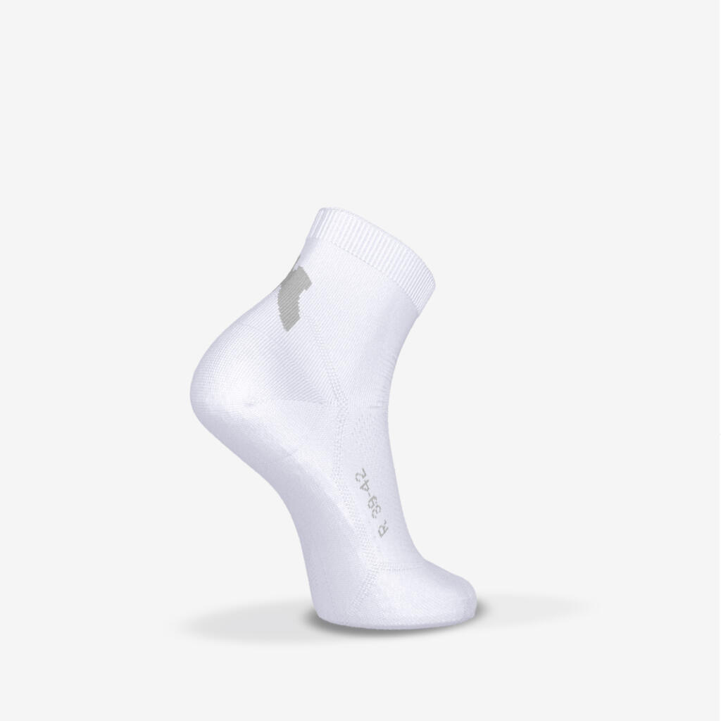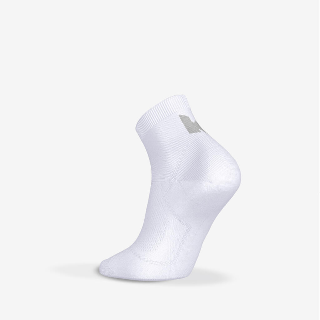 Zakaj nositi tanke nogavice? Te tekaške nogavice, ki so fino pletene in imajo prezračevalno cono na podplatu, so idealne za tekače, ki poleti iščejo lahkotnost in svežino.