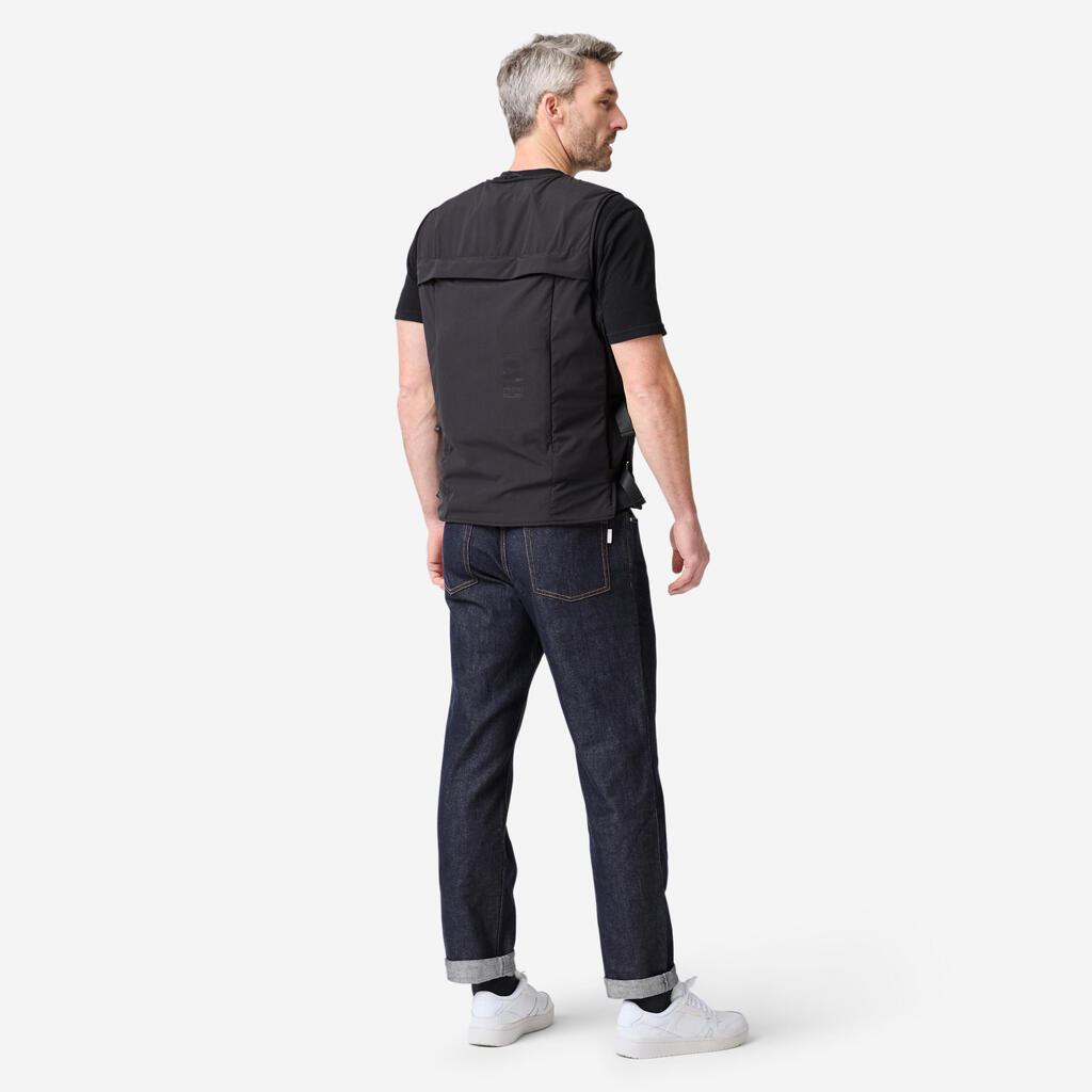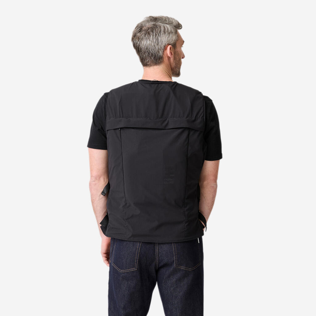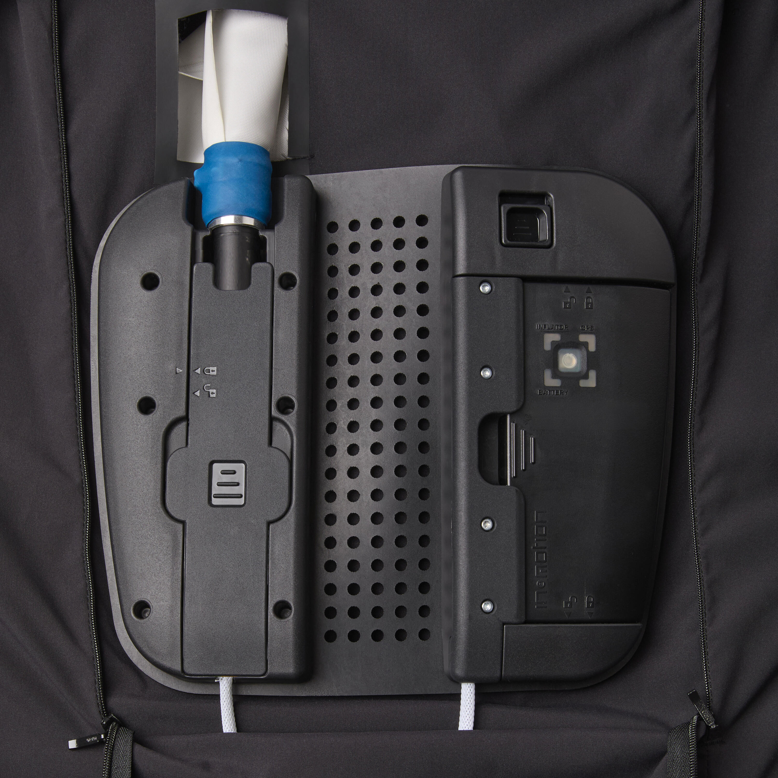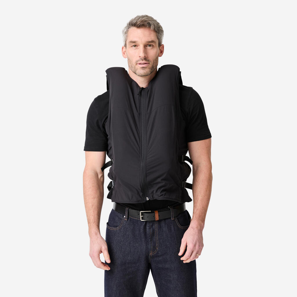 Varnostni telovnik z zračnimi blazinami je sestavljen iz različnih delov: torbica za zračno blazino, generator plina (imenovan »napihovalnik«) in »In&box« (ki ga DECATHLON ne priloži).