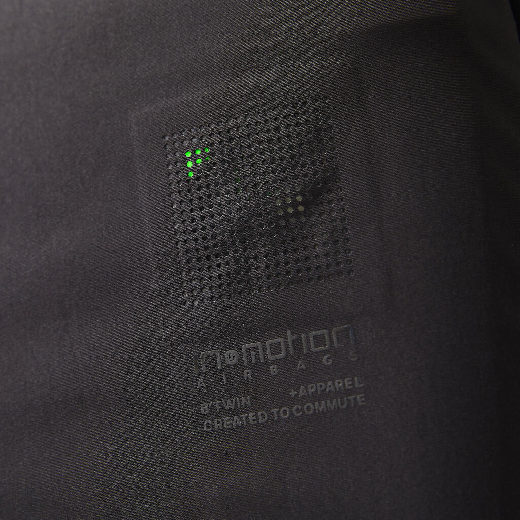 Ta varnostni telovnik z zračno blazino ščiti le zgornji del telesa (vratno hrbtenico, prsni koš, trebuh in hrbet). Odločno priporočamo, da med kolesarjenjem nosite tudi kolesarsko čelado, da zaščitite vse občutljive dele telesa.