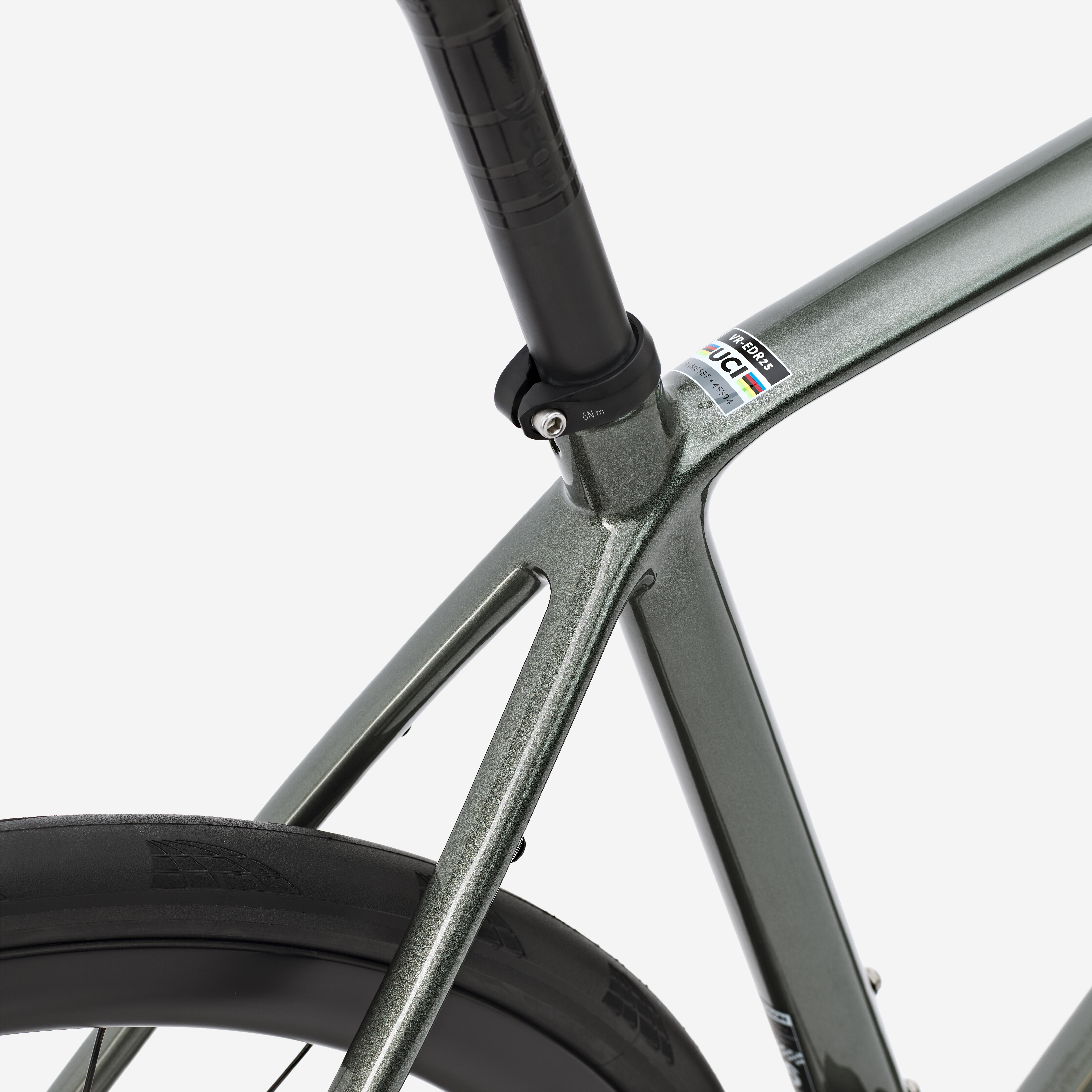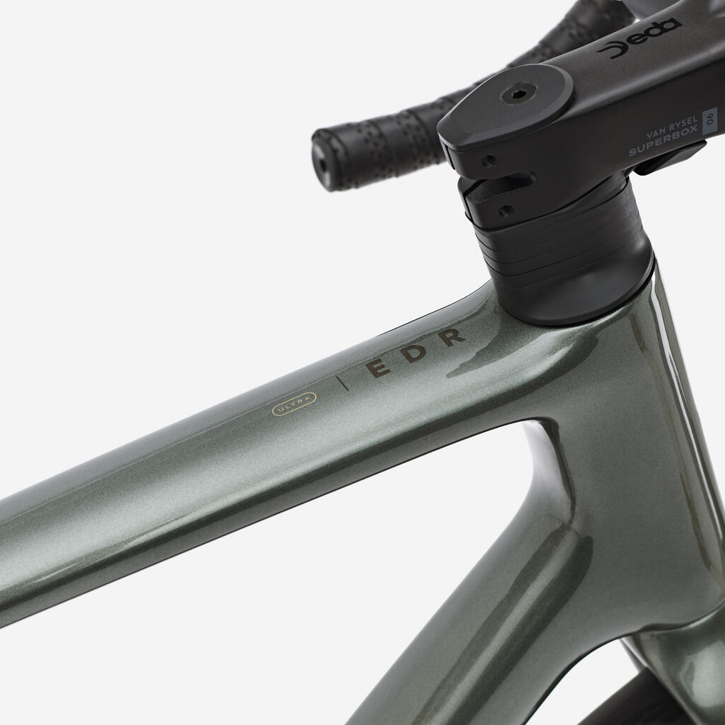 Okvir EDR CF ULTRA je bil v celoti razvit znotraj našega podjetja in izdelan iz visokomodulnih ogljikovih vlaken, kar zagotavlja idealno ravnovesje med lahkostjo in togostjo – za udobno in prijetno vožnjo. Teža okvirja: 830 g pri velikosti M