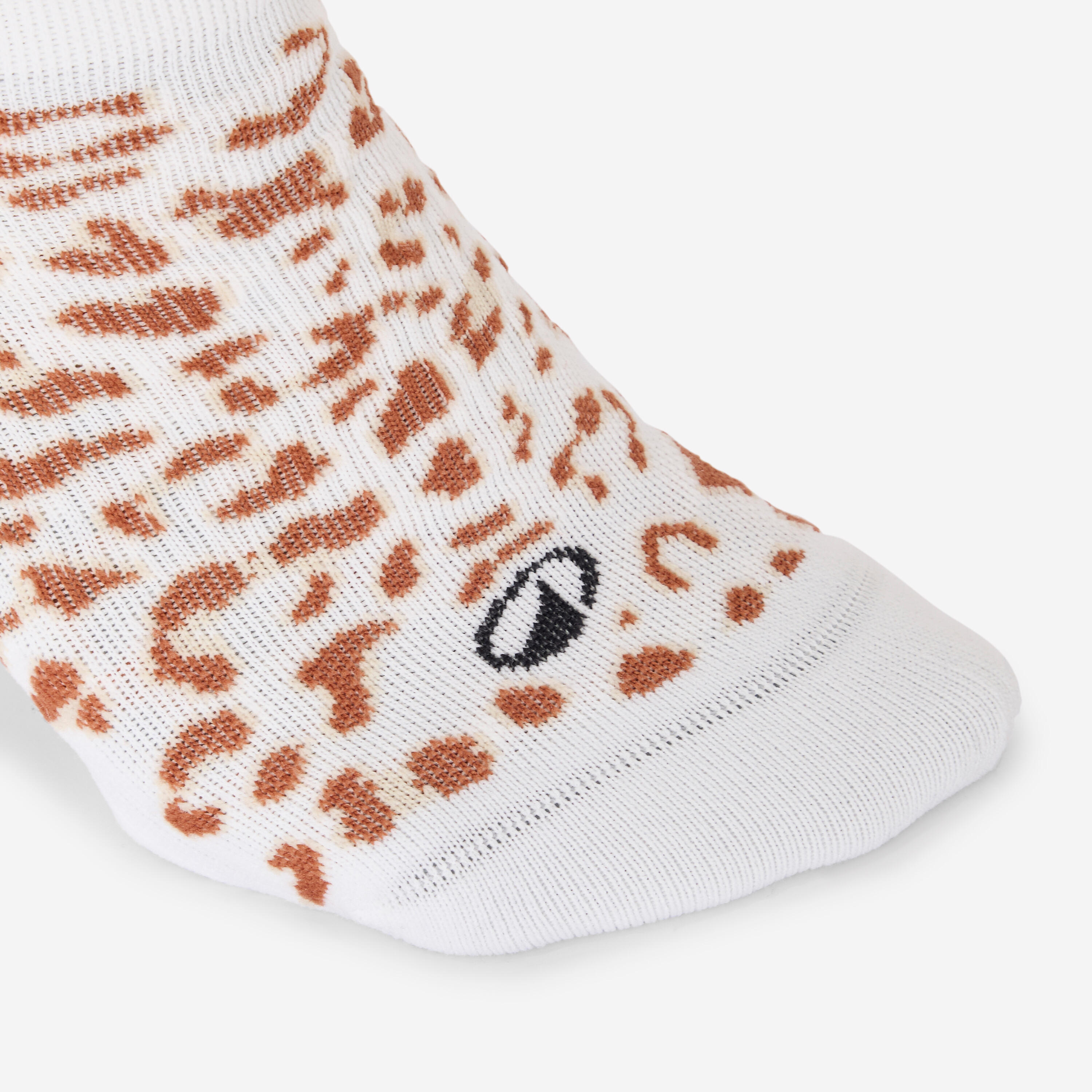 Nogavice za fitnes Decathlon so izdelane iz niti, ki preprečujejo nastanek žuljev na plantarni površini sprednjega dela stopala.