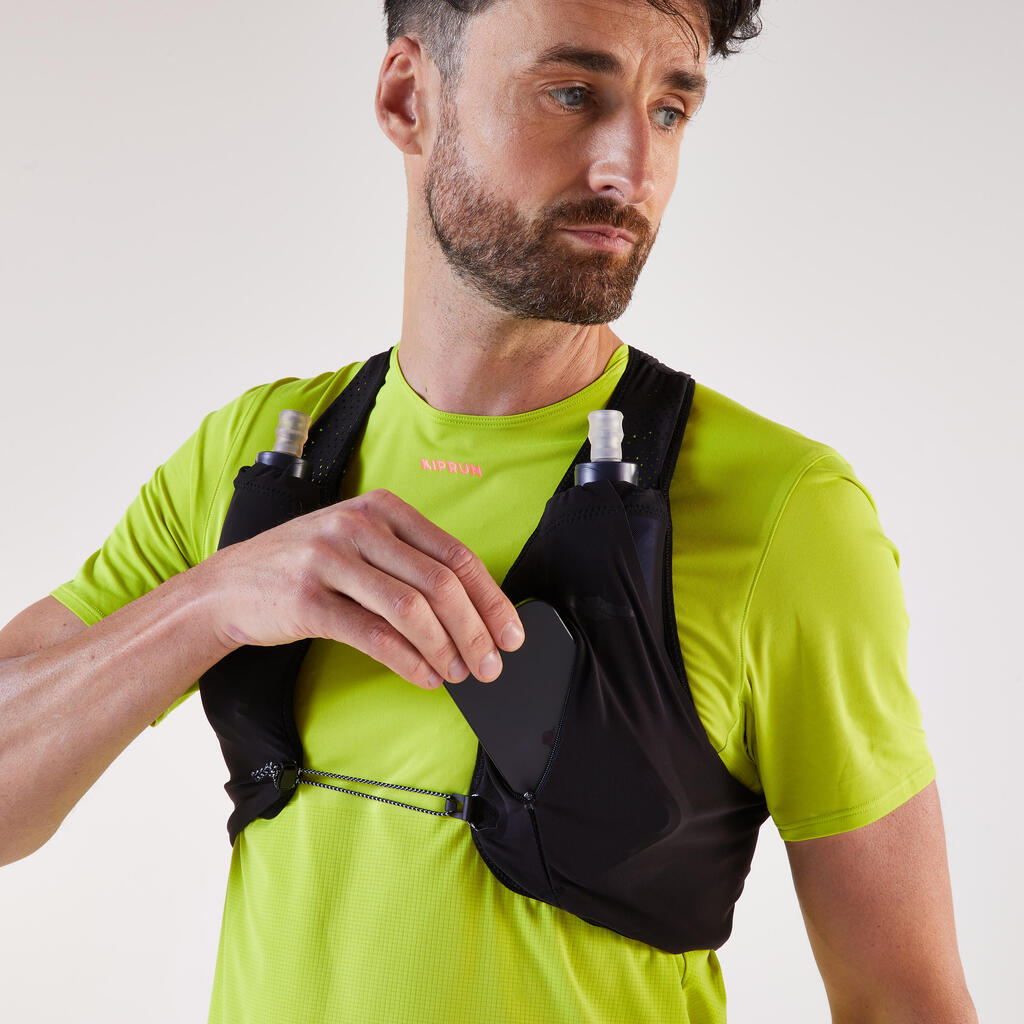 Ta 3L tekmovalni brezrokavnik, zasnovan za zahtevne tekače, ki želijo z njimi vzeti osnove, združuje lahkotnost, stabilnost in dostopnost.Ergonomska oblika zagotavlja optimalno podporo.