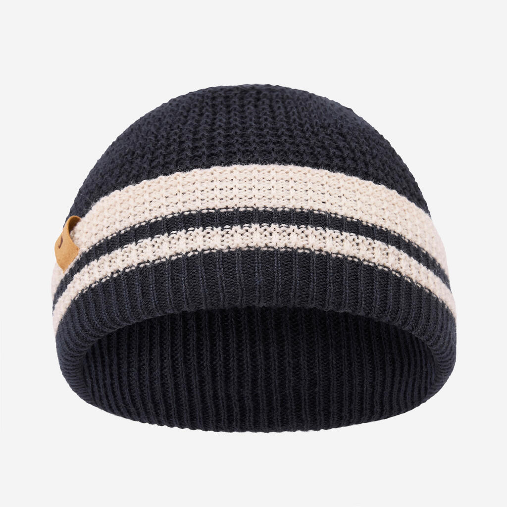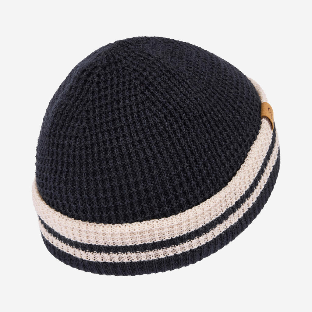 Kapa nudi toploto in zaščiti ušesa pred vetrom. Zavihan rob in pletenje.