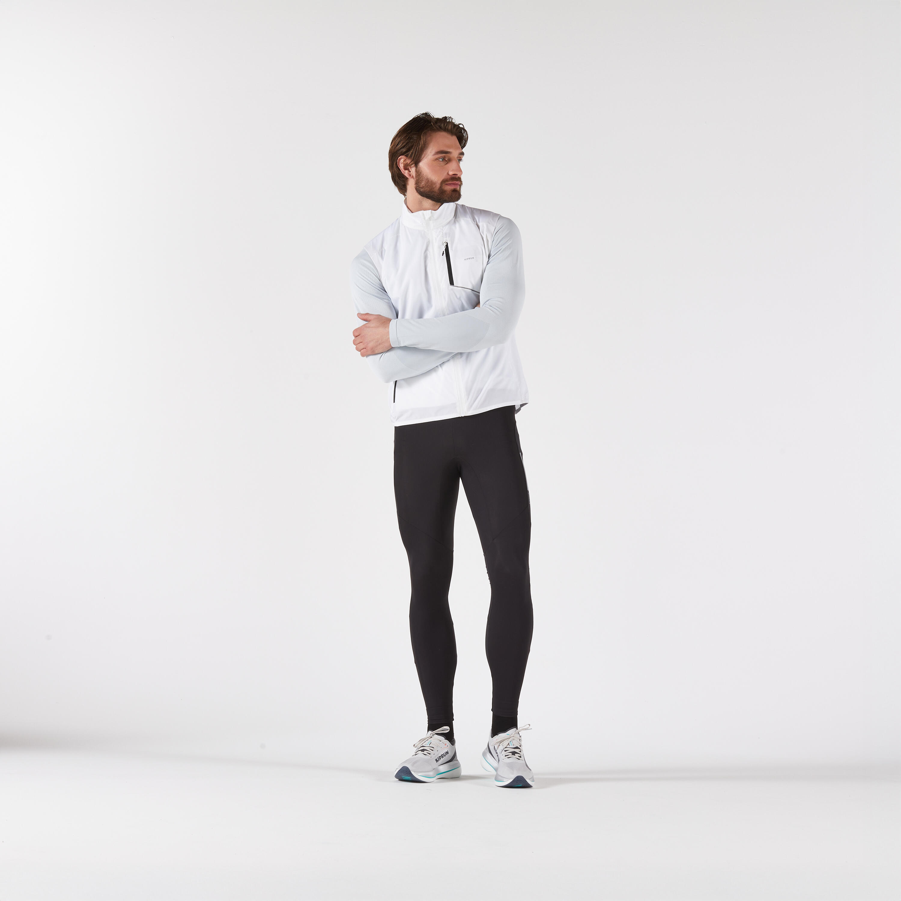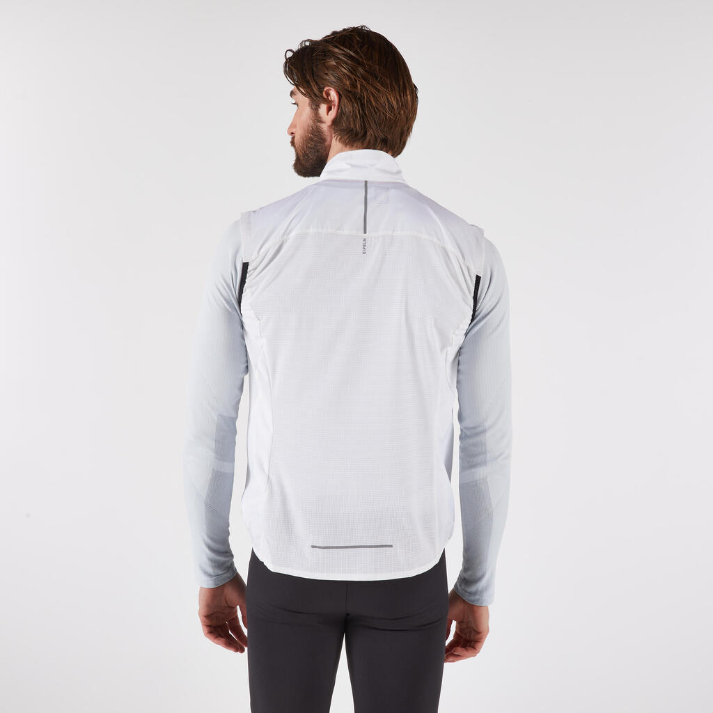 Moška tekaška jakna brez rokavov KIPRUN Run 500, odporna proti vetru, bela