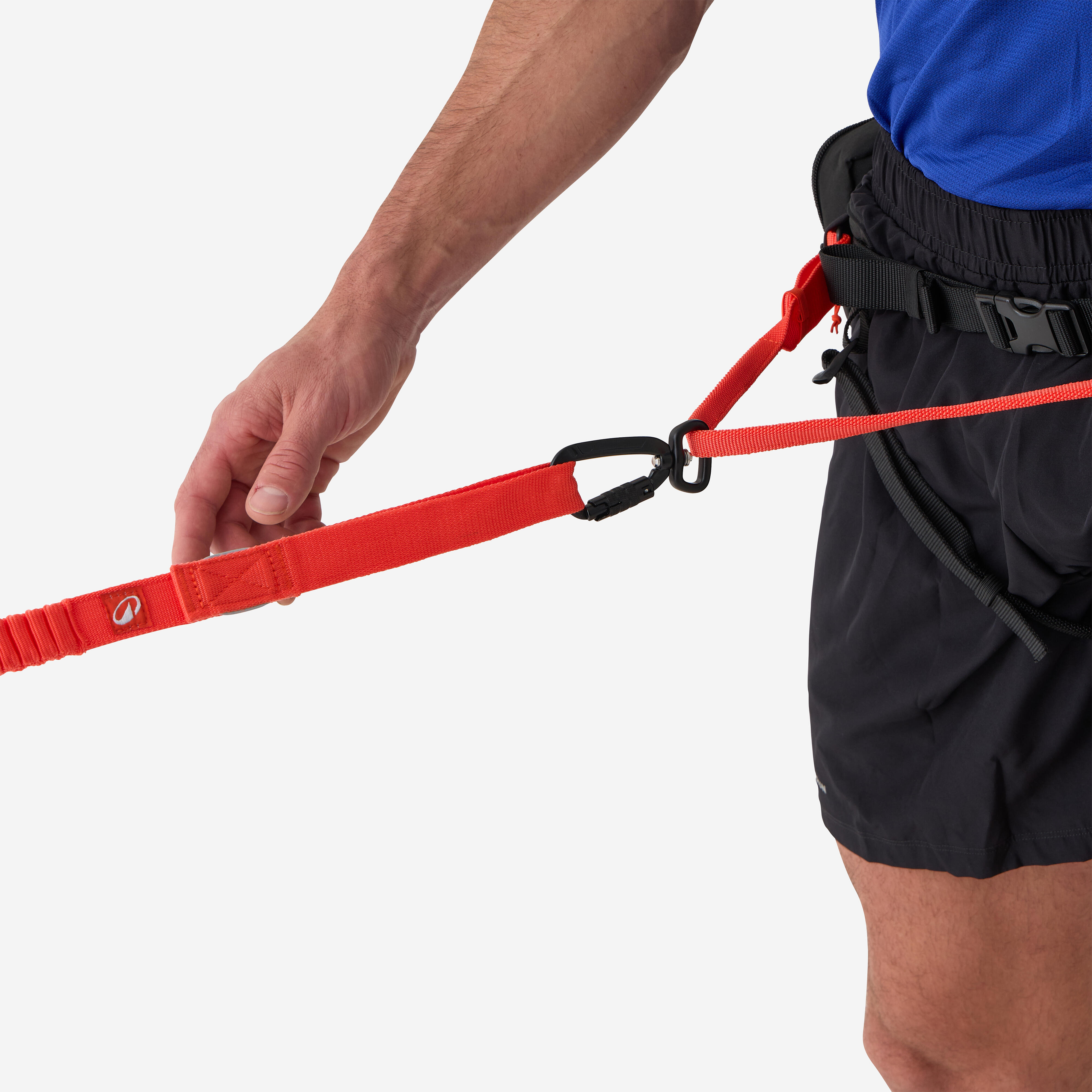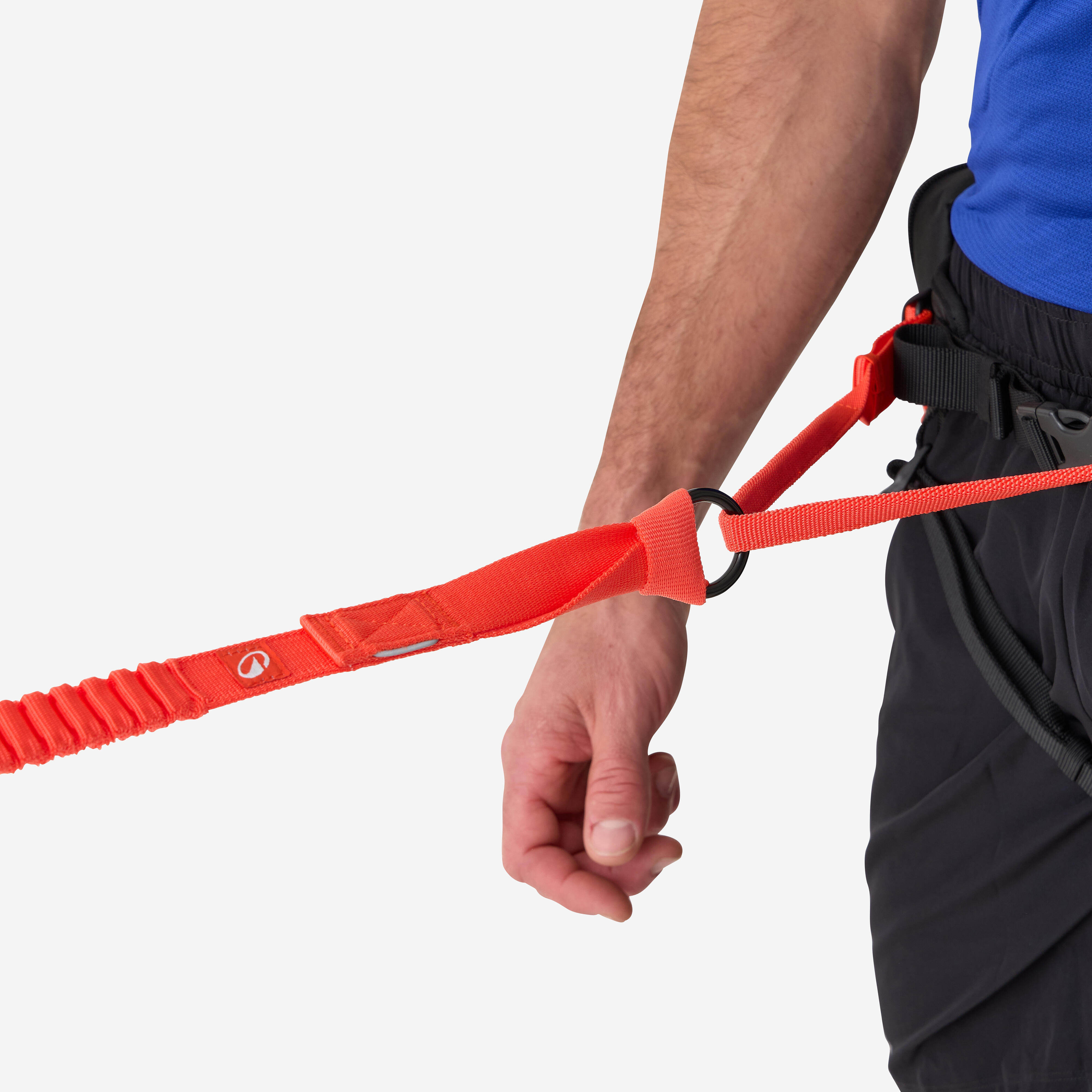 1. Uporaba obroča. Prevlecite ročaj povodca skozi obroč, nato pa s karabinom zapnite ročaj, da nastane zanka.