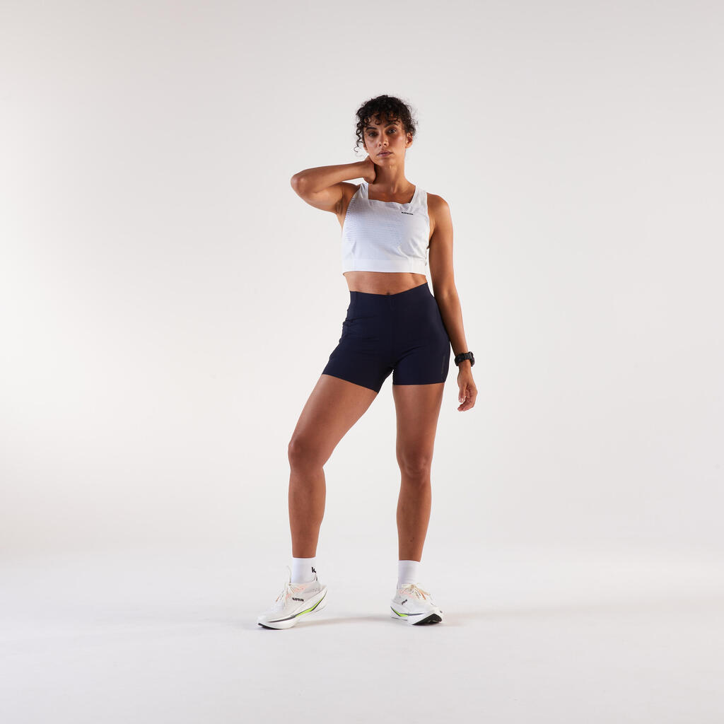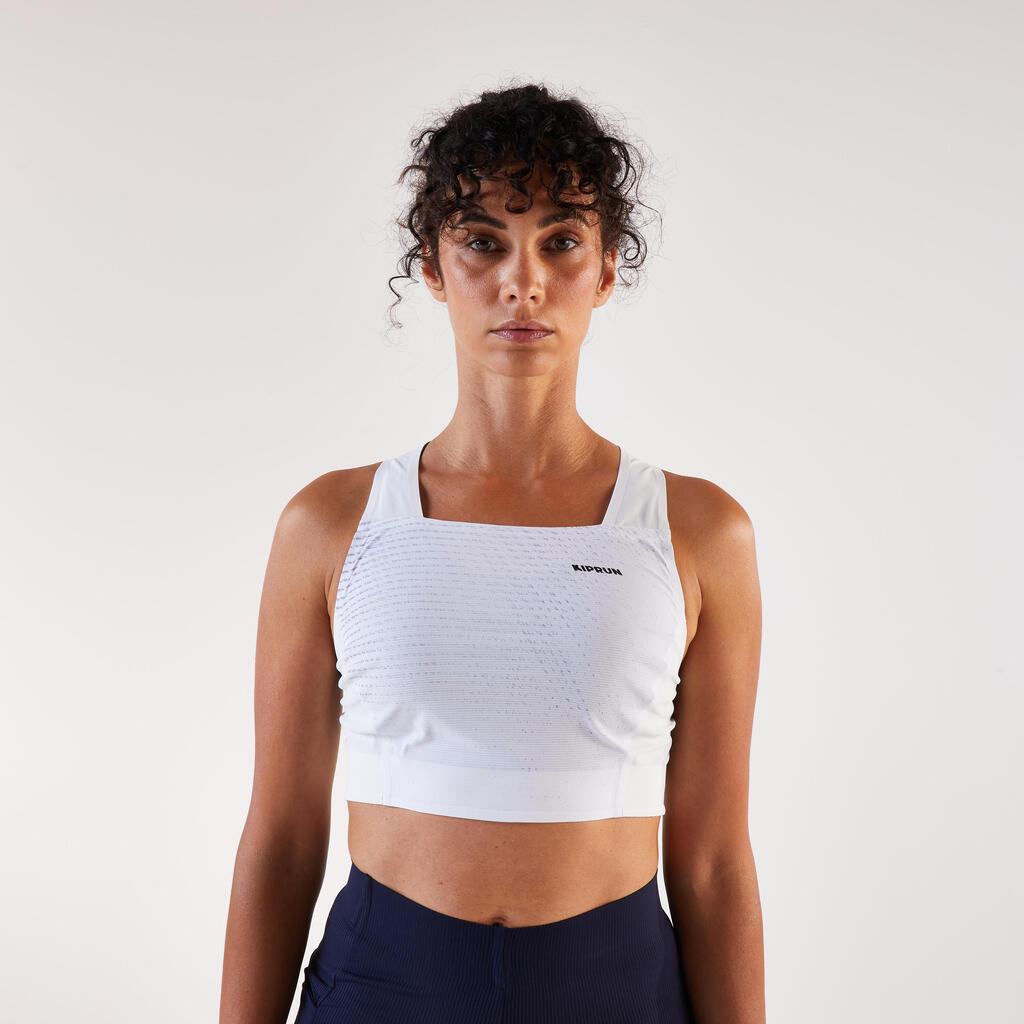 Ustvarjen v sodelovanju z Méline Rollin, francosko rekorderko v maratonu, zato je zasnovan za najzahtevnejše izzive. Méline ga je preizkusila in odobrila v realnih pogojih, kar zagotavlja prileganje in ustreza potrebam najbolj ambicioznih tekačic. Zahvaljujoč njenemu strokovnemu znanju in povratnim informacijam ta krajši top združuje lahek dizajn, udobje in zmogljivost, kar vam omogoča, da se izkažete po najboljših močeh!