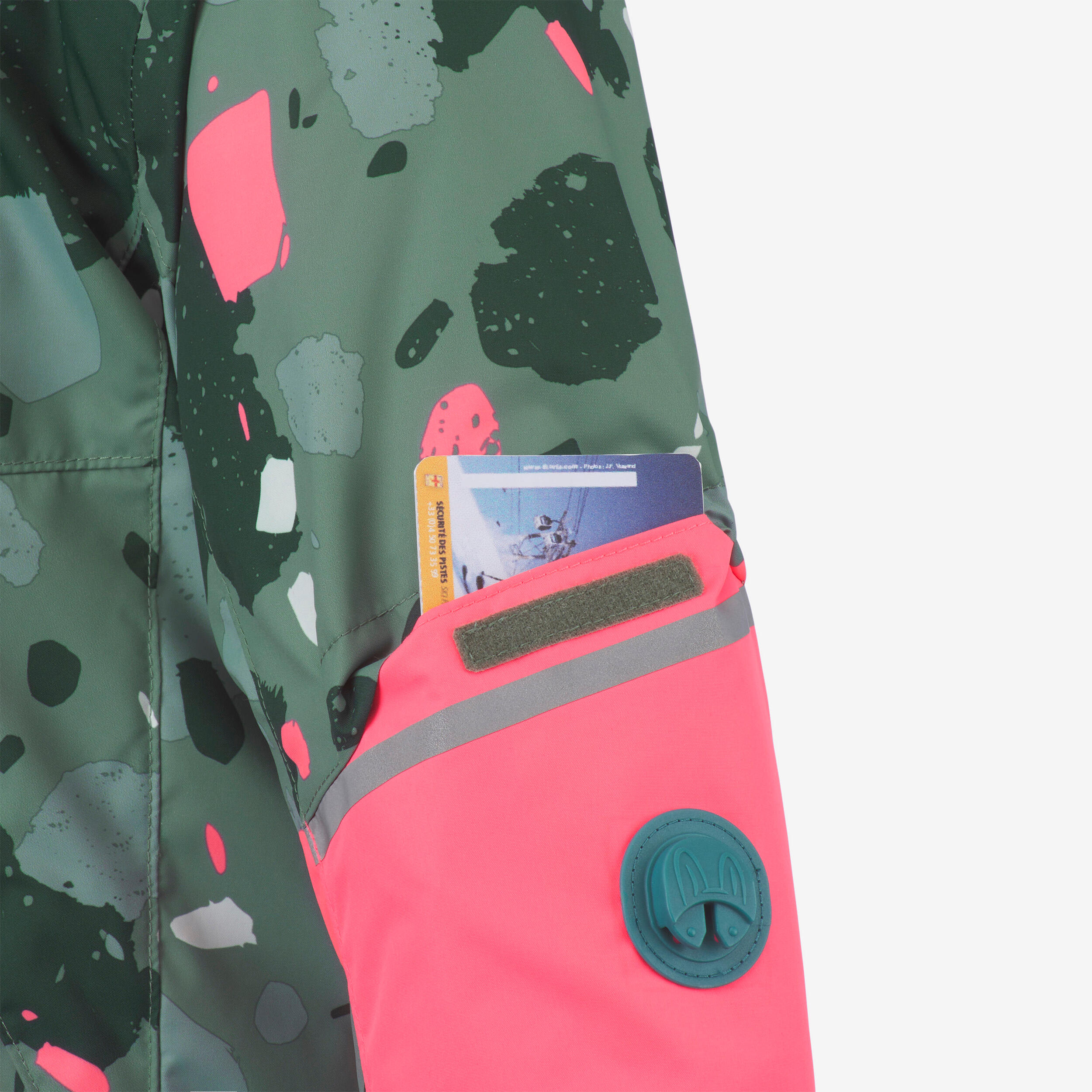 2 žepa z zadrgo. 1 enostavno dostopen žep za smučarsko vozovnico.