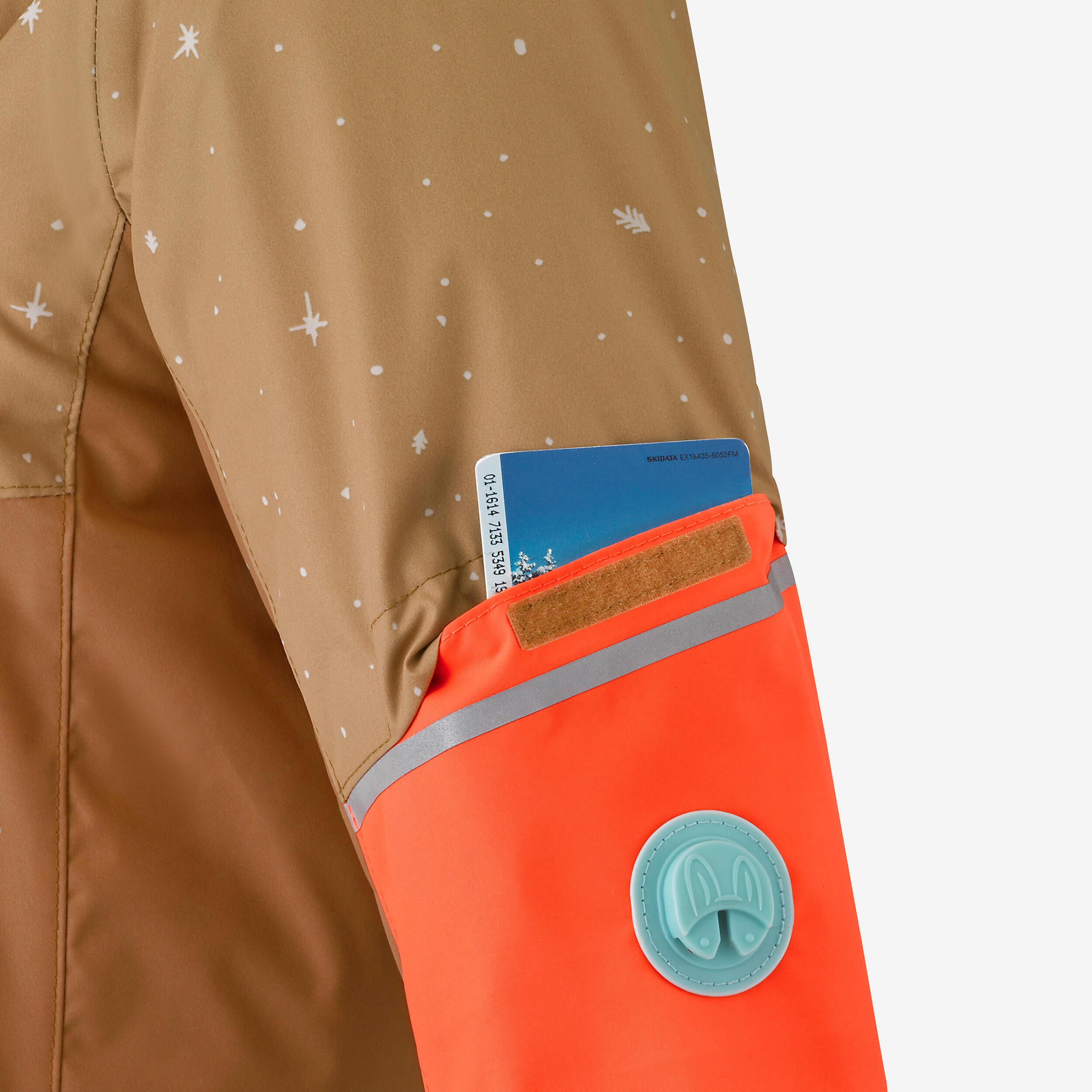 Prilagodljiva dolžina za uporabo vsaj 2 sezoni. Sponka za pritrditev Decathlonovih rokavic.