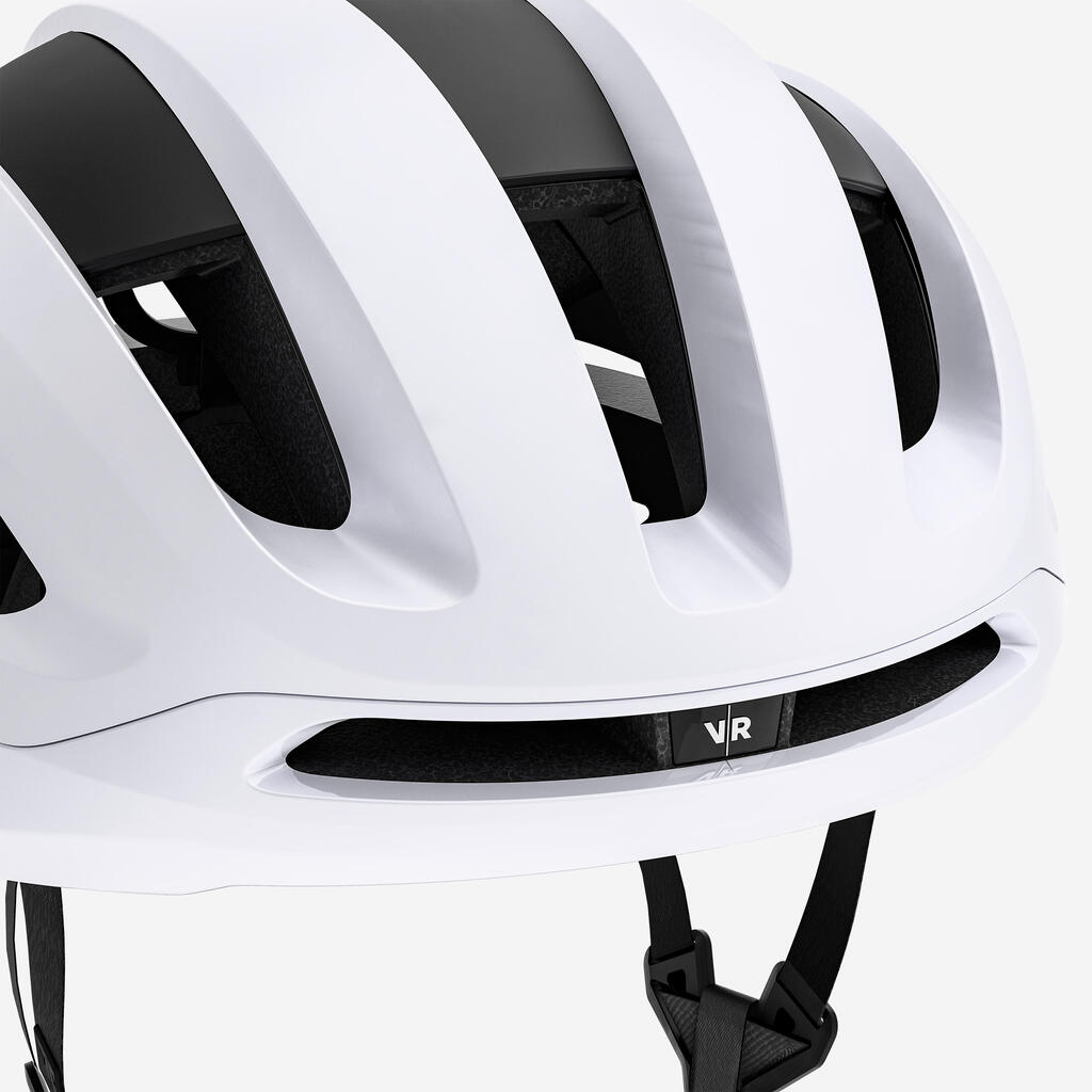 Poleg nastavljive ventilacije ima naša čelada tudi dvojni sistem ventilacije. Pri visokih hitrostih zrak vstopi skozi velike sprednje odprtine in kroži skozi globoke kanale, kar ustvarja konstanten hladilni učinek. Pri nizkih hitrostih ali pri vzpenjanju odprtine na vrhu delujejo na principu konvekcije: topel zrak naravno uhaja, medtem ko se hladen zrak sesa skozi stranske odprtine.
