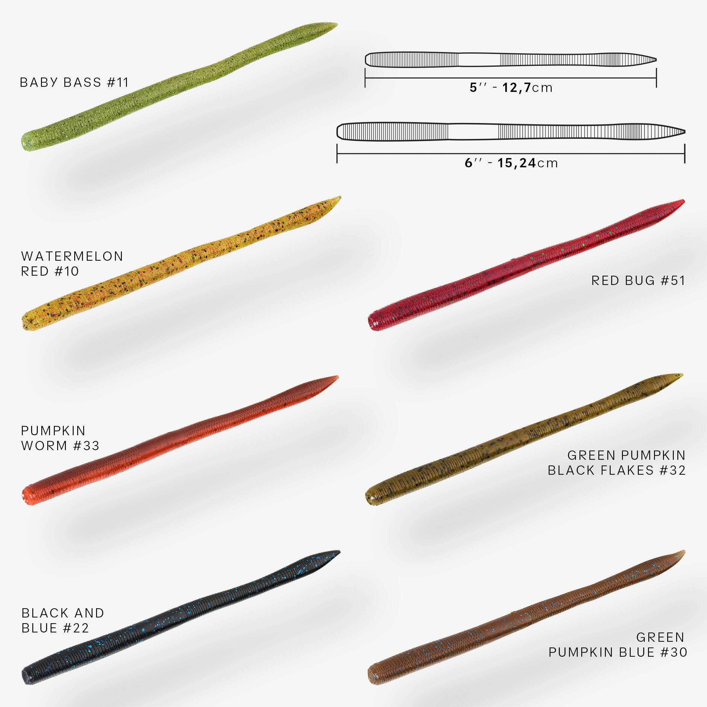 Odlična je za ribolov ščuk in ostrižev. Navežete lahko na več načinov: wacky, texan, carolina ali drop shot, ki ponuja veliko vsestranskost.