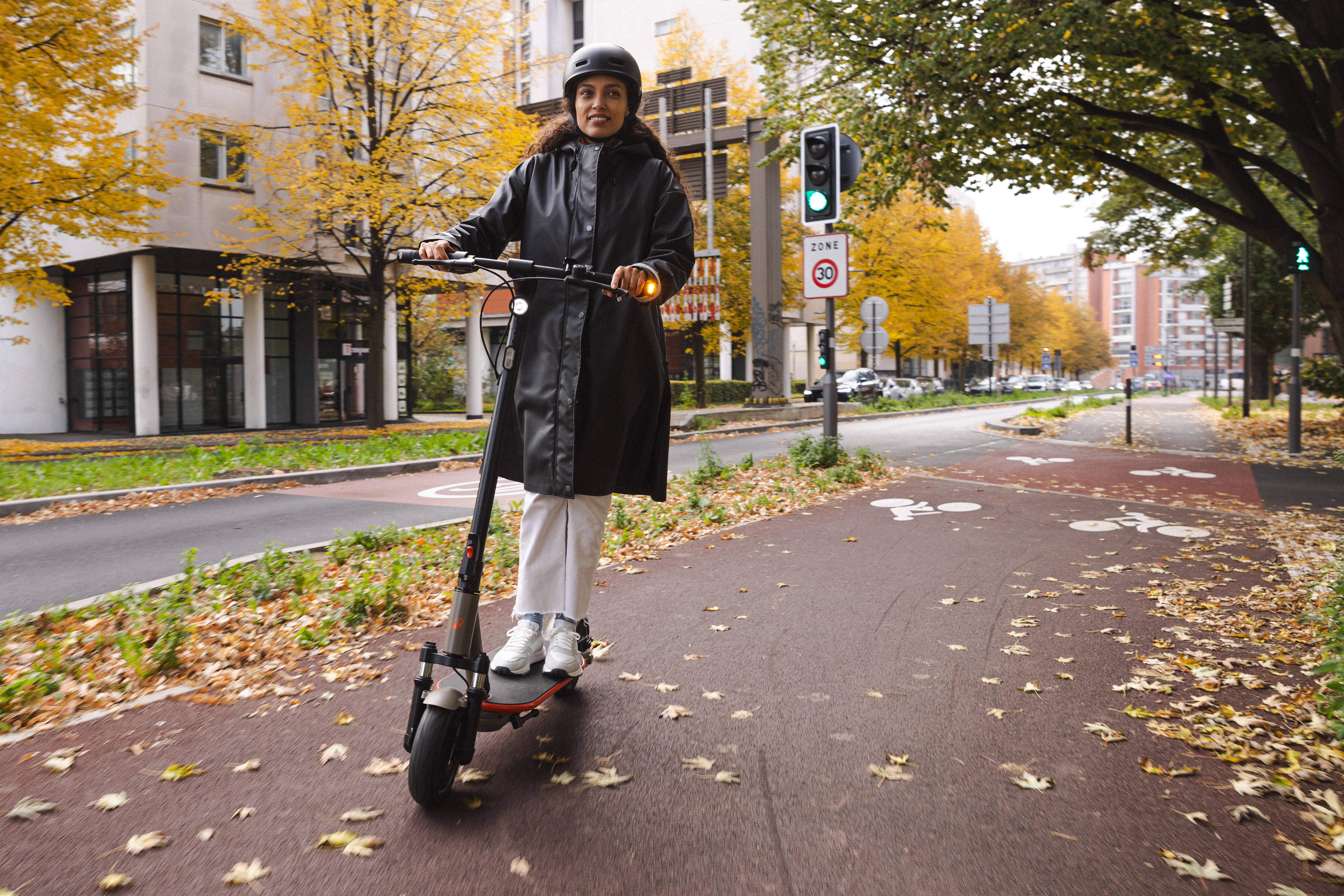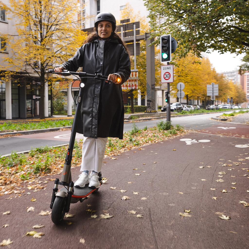 Več dejavnikov vpliva na domet: izbrani način vožnje, teža uporabnika, trdota koles, veter, naklon, zunanja temperatura itd.