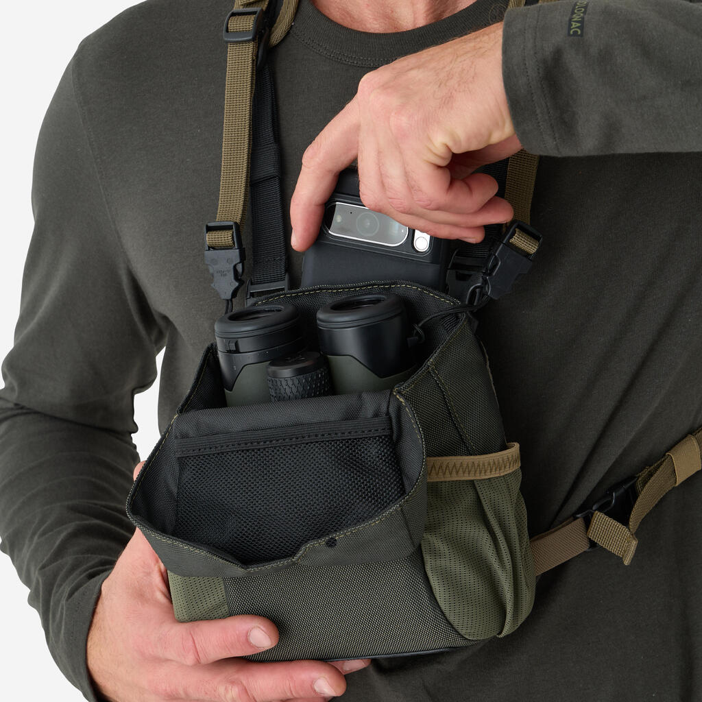 V osrednjem predalu je na voljo mrežast žep. V mrežast žep lahko shranite krpo iz mikrovlaken. Opomba: krpa iz mikrovlaken je priložen vsem daljnogledom znamke Solognac.