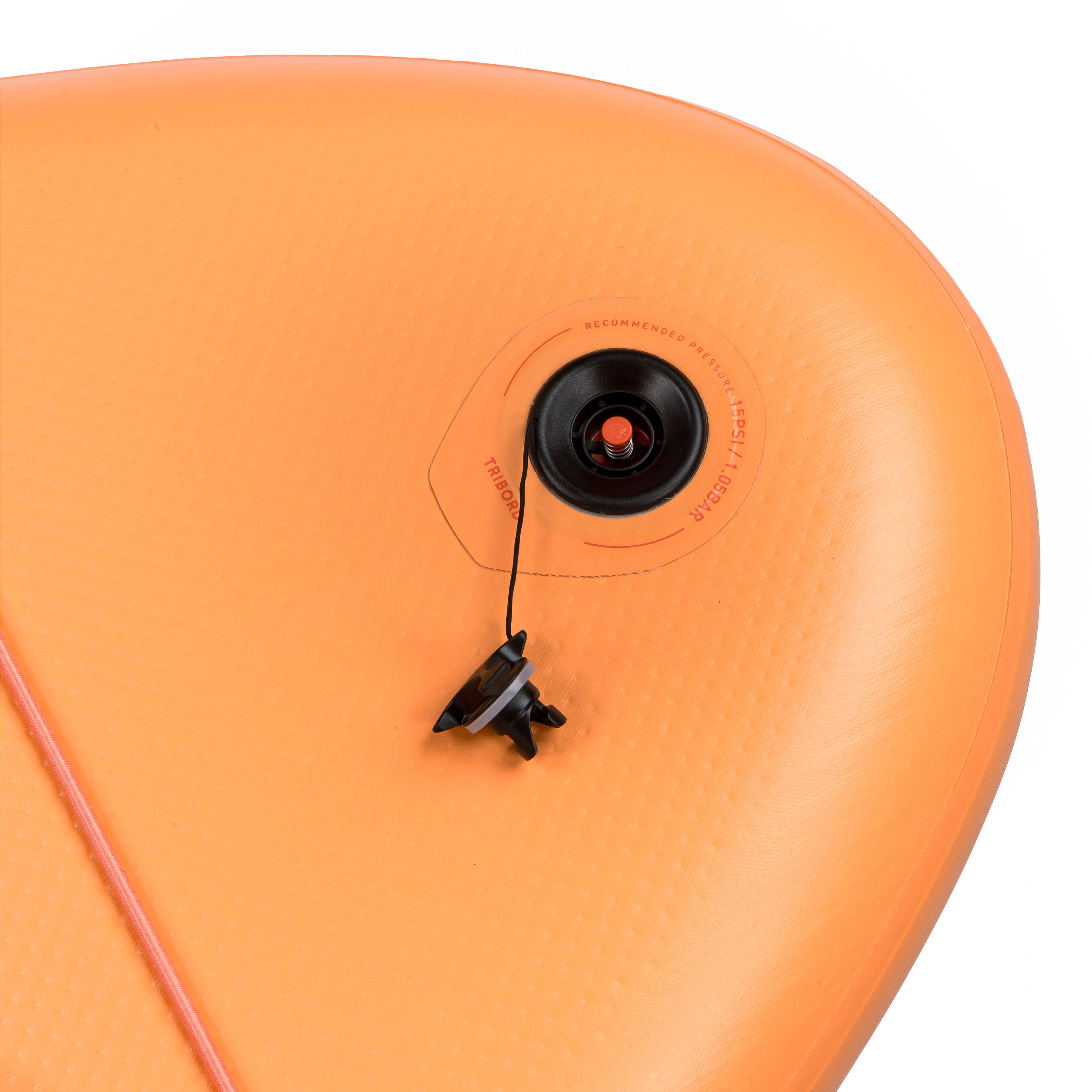 Praznjenje: močno pritisnite na oranžen gumb na ventilu, da izpustite zrak. Ne približujete obraza in se umaknite. Desko pričnite zvijati z nasprotne strani od ventila, da iztisnete zrak.