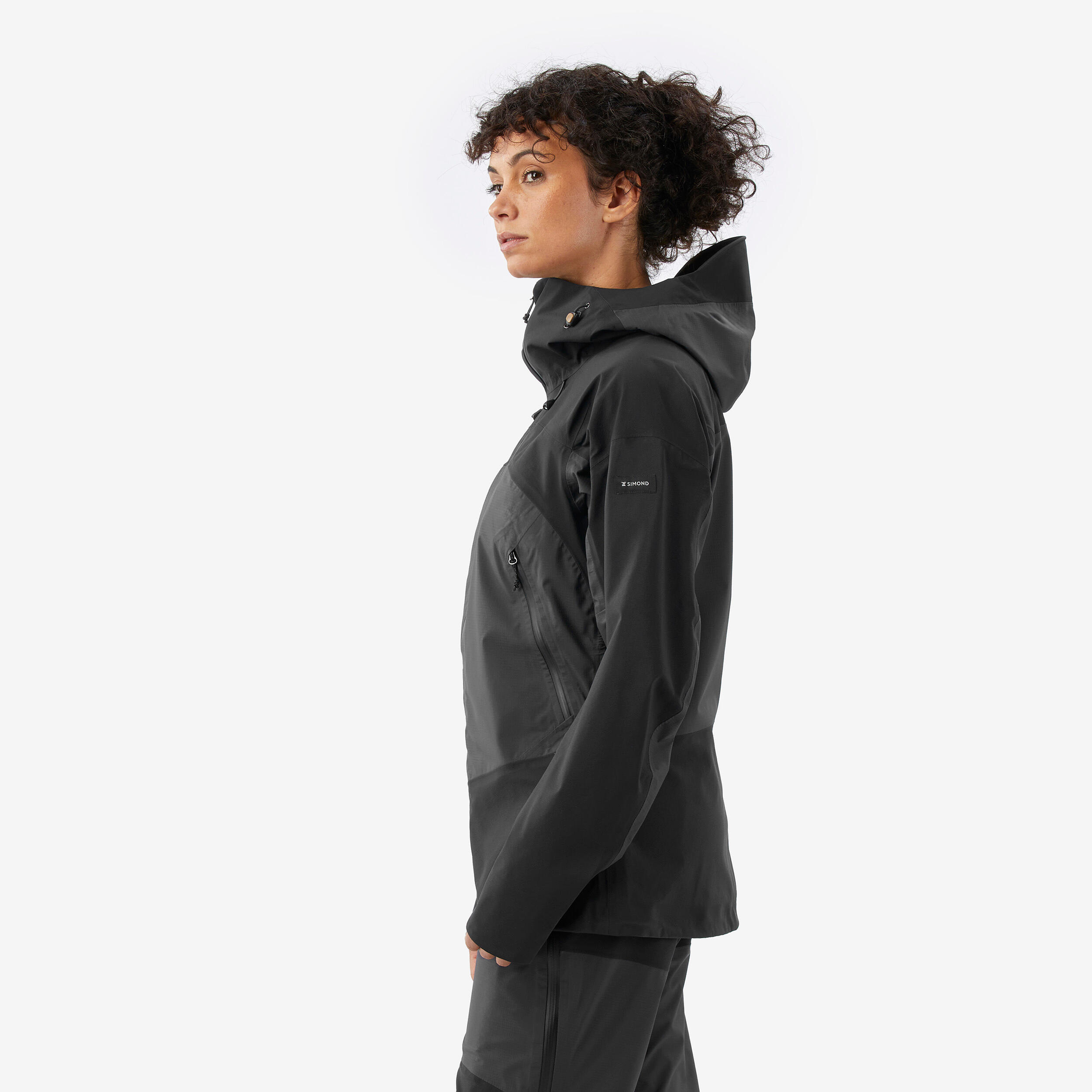 Trpežen material (155 g/m², 70 den), na predelih, ki morajo biti zaščiteni pred drgnjenjem (ramena, zunanji del rokavov, sprednji in zadnji rob), ter lahkega in zračnega materiala (102 g/m², 20 den) na preostalem delu jakne. Asimetrična jakna ima nekoliko daljši hrbtni del, kar zagotavlja odlično zaščito pri vseh vaših gibih med aktivnostjo ali bivakiranjem.