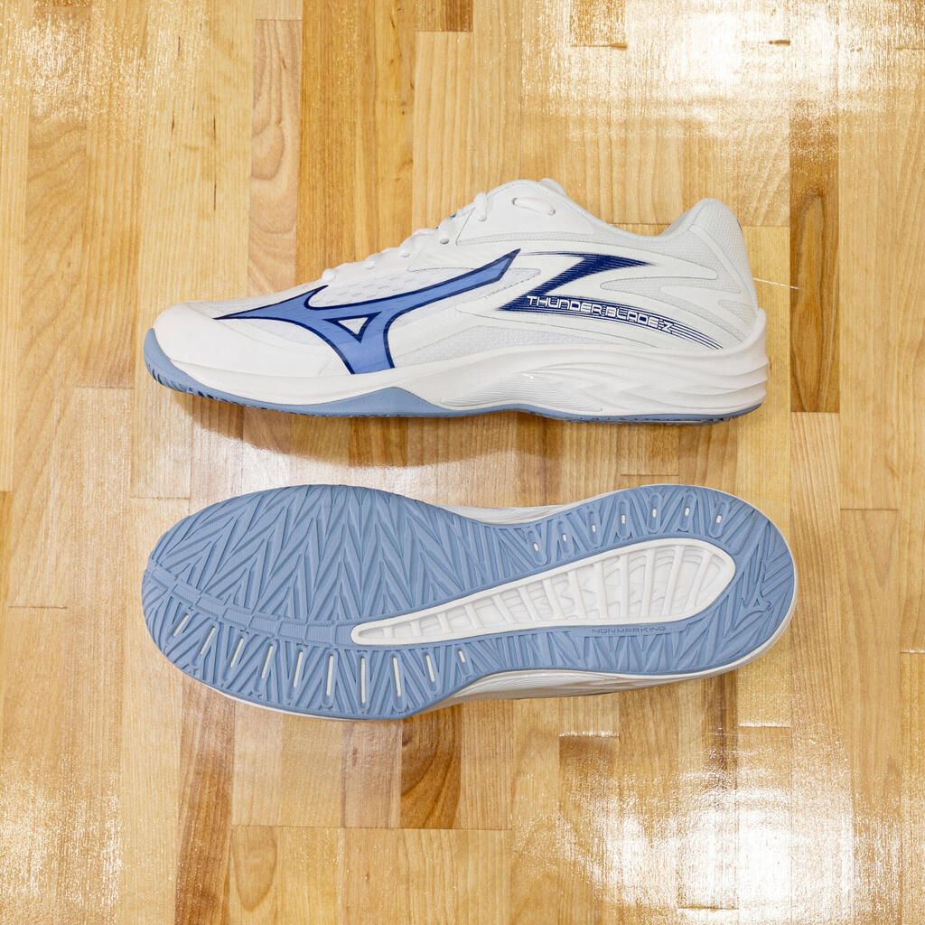 Mizuno Thunder Blade, ki so ga pravkar razvili, je idealen za vse, ki iščejo vsestranske čevlje. Odlikuje ih lahka zasnova, ki je hkrati udobna in stabilna, kar je odlična kombinacija za začetek vaše športne kariere. Nova struktura podplata je lahka in oblazinjena, medtem ko 5 mm debel vložek doda dodatno udobje.Zunanji podplat, ki ne pušča sledi, zagotavlja optimalen oprijem.