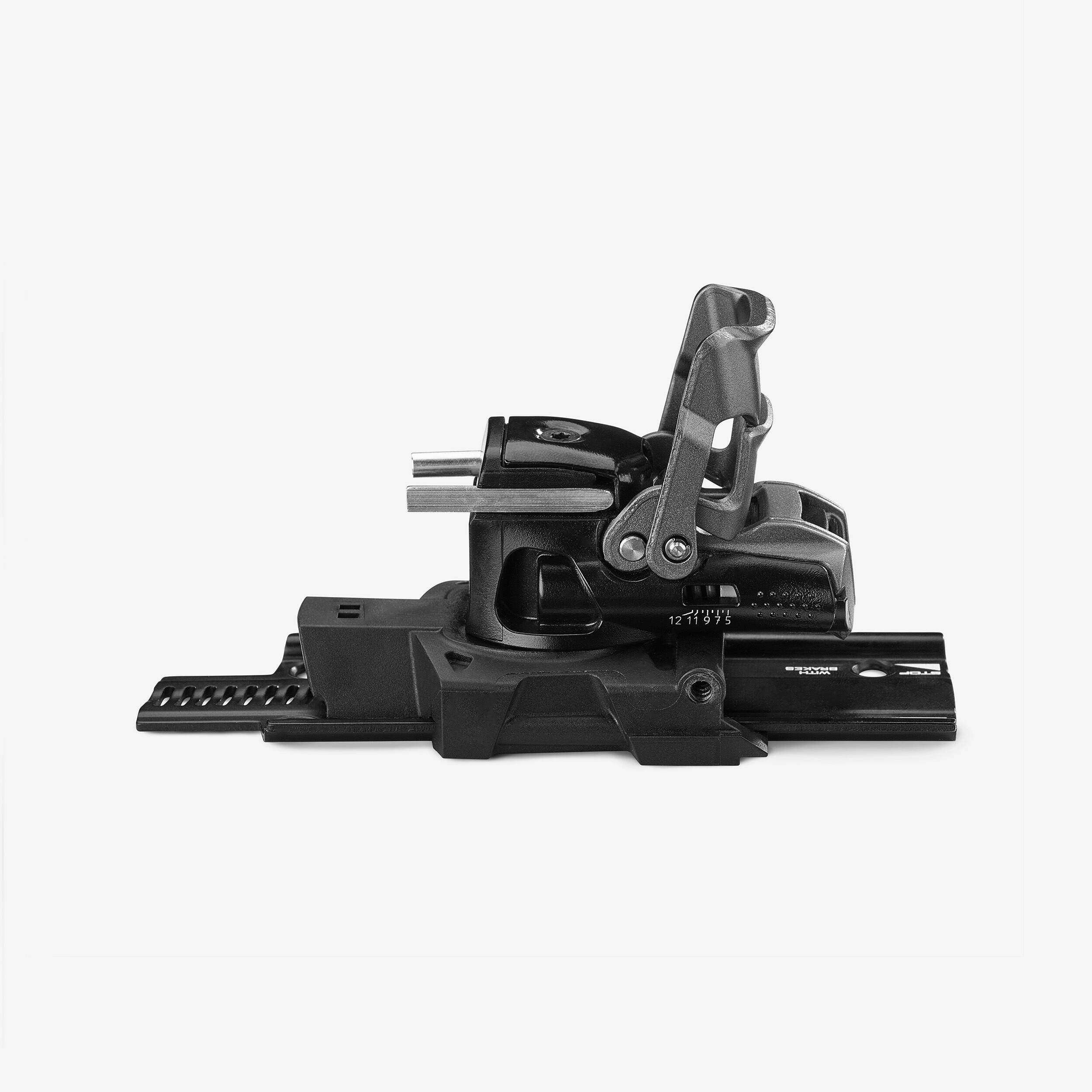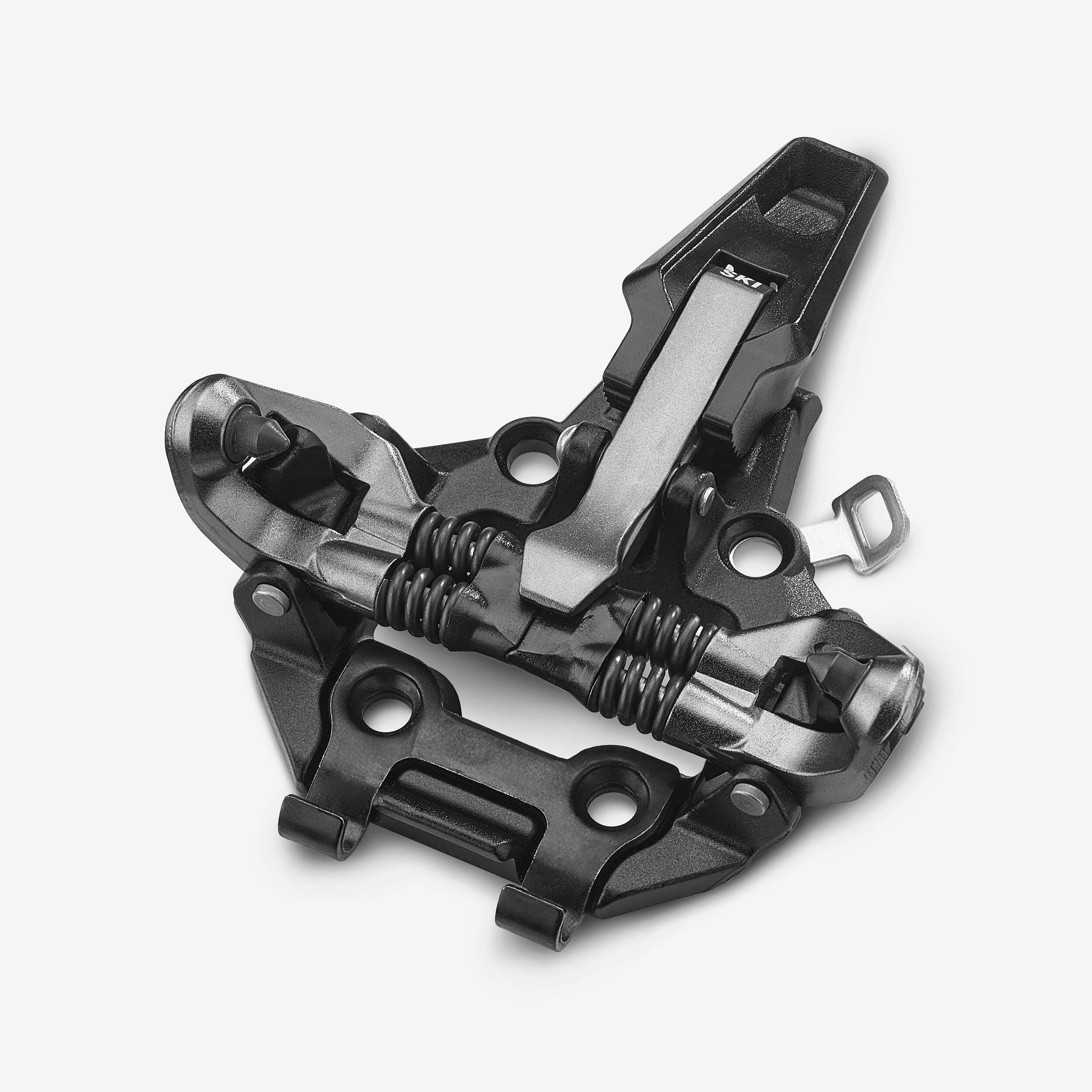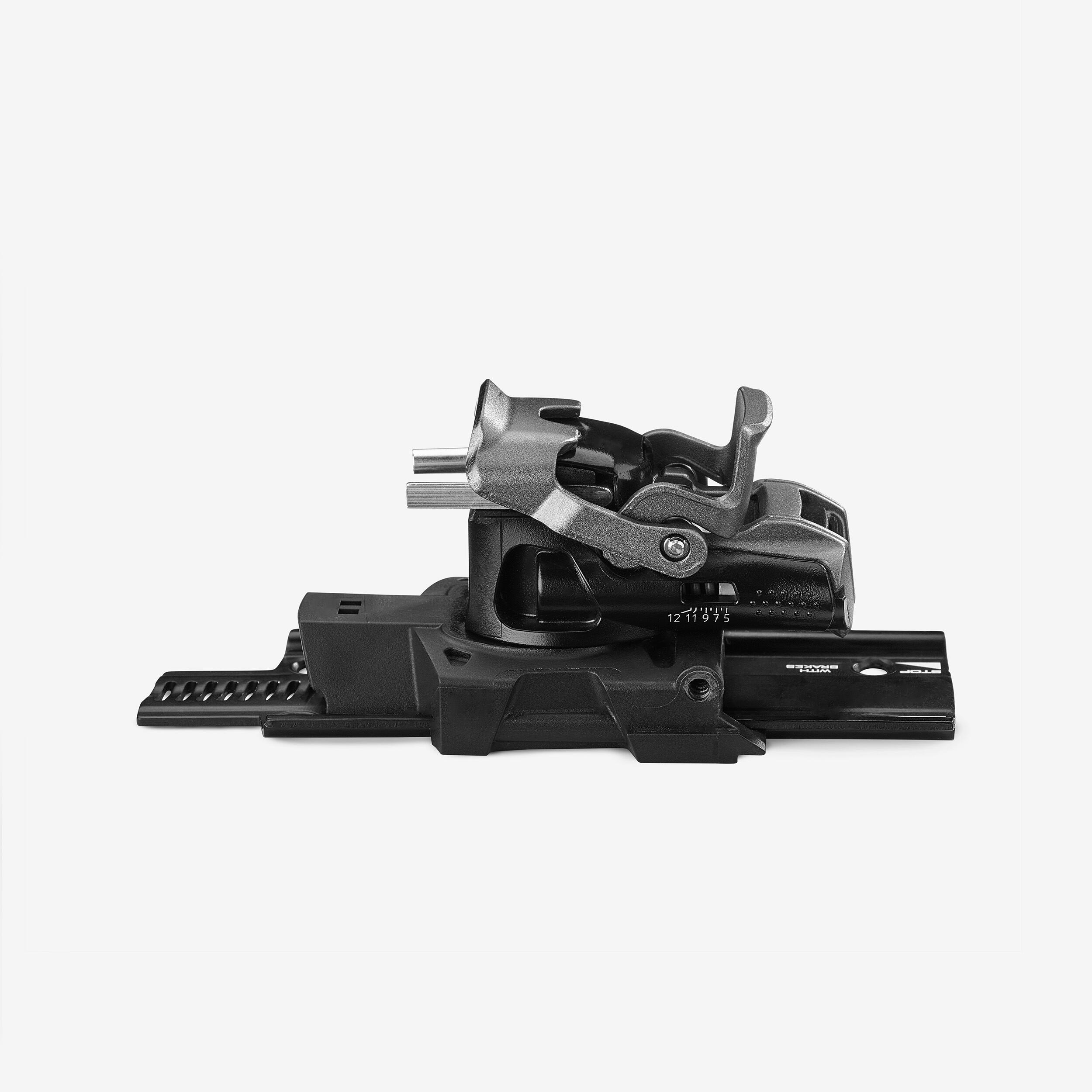 Čevlje na sprednjem delu namestite pod rahlim kotom. Ko se kovinske luknje vzporedne s točkami vezi, močno pritisnite. Vezi so pritrjene na srednjem delu. Med vzponom: dvignite zadnji plastičen del, da zaklenete vezi. Obrnite blazinico na peti, da preprečite pripenjanje na zadnjem delu čevlja. Prilagodite zadnji del vezi, tako da najdete najboljšo višino.