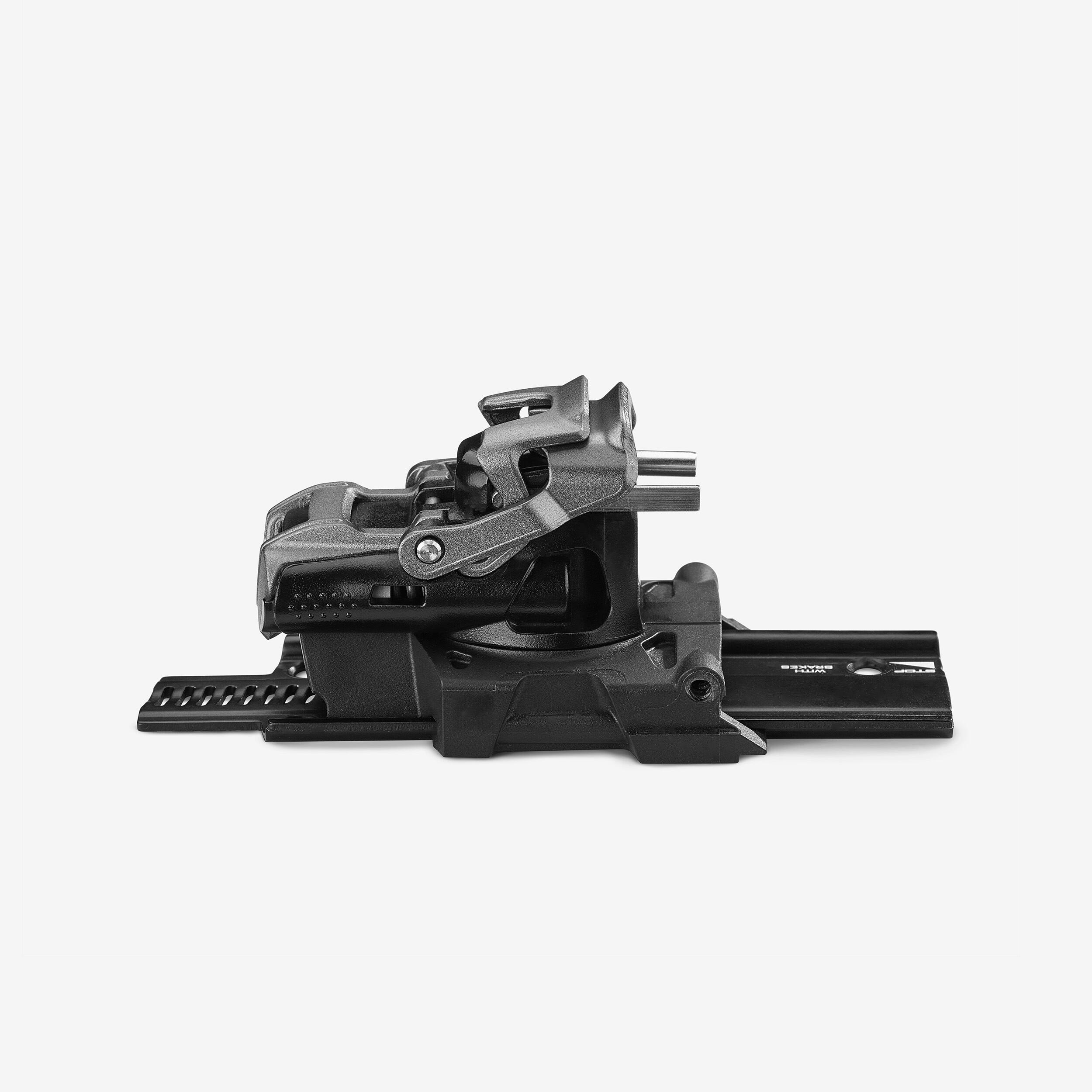 Čevlje na sprednjem delu namestite pod rahlim kotom. Ko se kovinske luknje vzporedne s točkami vezi, močno pritisnite. Vezi so pritrjene na srednjem delu. Med spustom: plastičen del naj ostane spuščen, da se lahko odpre v primeru padca. Zadnji del vezi zavrtite tako, da bo zaskočil v čevelj. Sprostite zavoro vezo. Hitro pripnite čevelj.