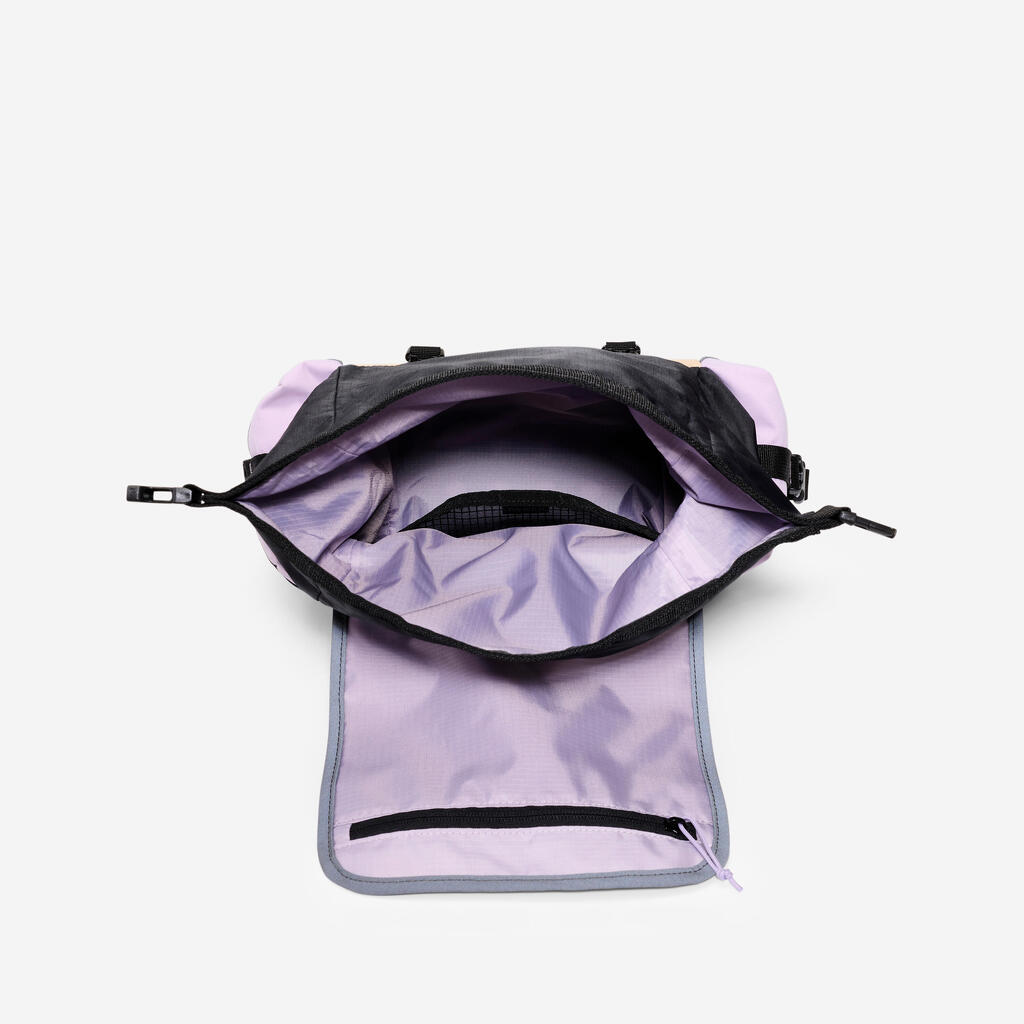 Glavni predal, zasnovan tako, da prenese rahel dež. Rolltop zaključek se trikrat prepogne, da zagotovi neprepustnost za vodo.