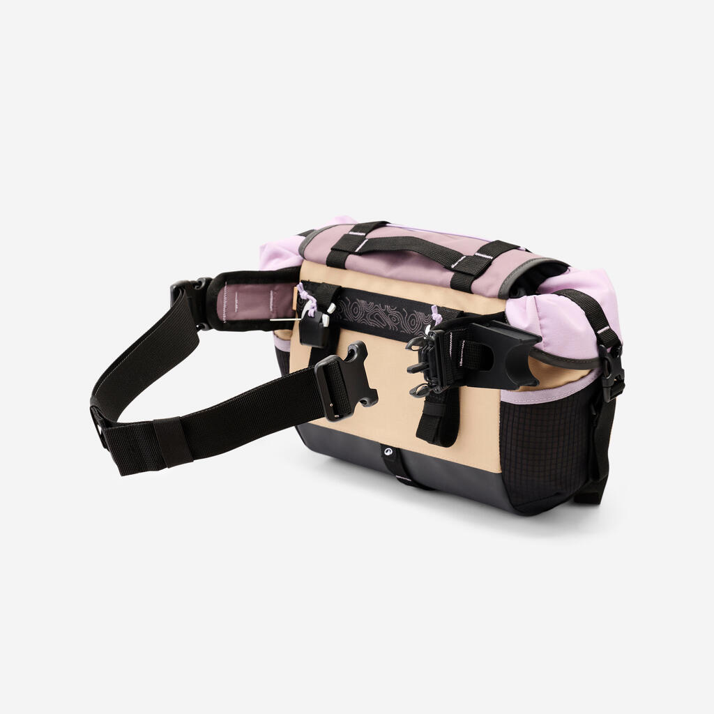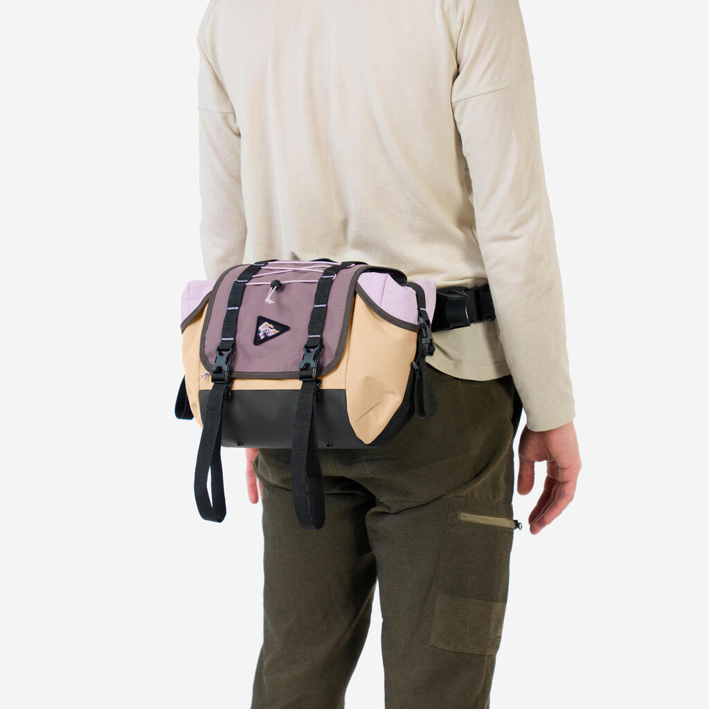 Odpnite sponko na zadnji strani torbe, nato pa pritrdite priloženi trak, da torbo hitro spremenite v torbico za okoli pasu.